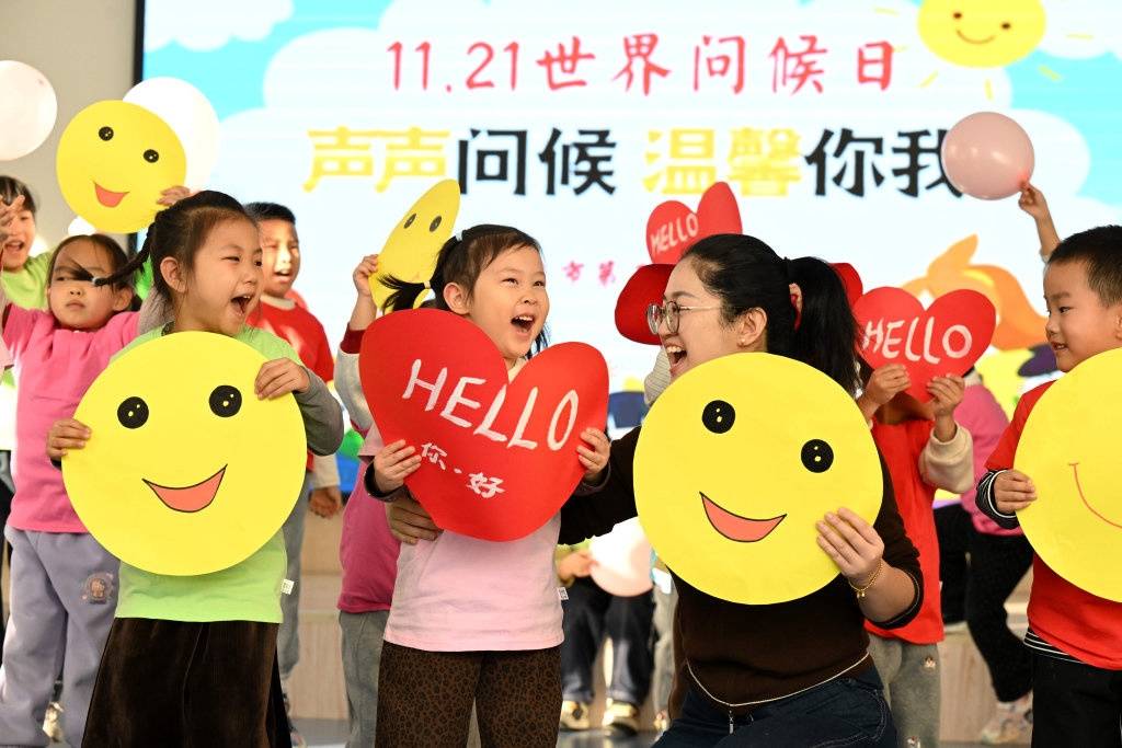 11月21日将迎来“世界问候日”,一些学校举行主题活动,引导孩子们养成文明行为习惯。