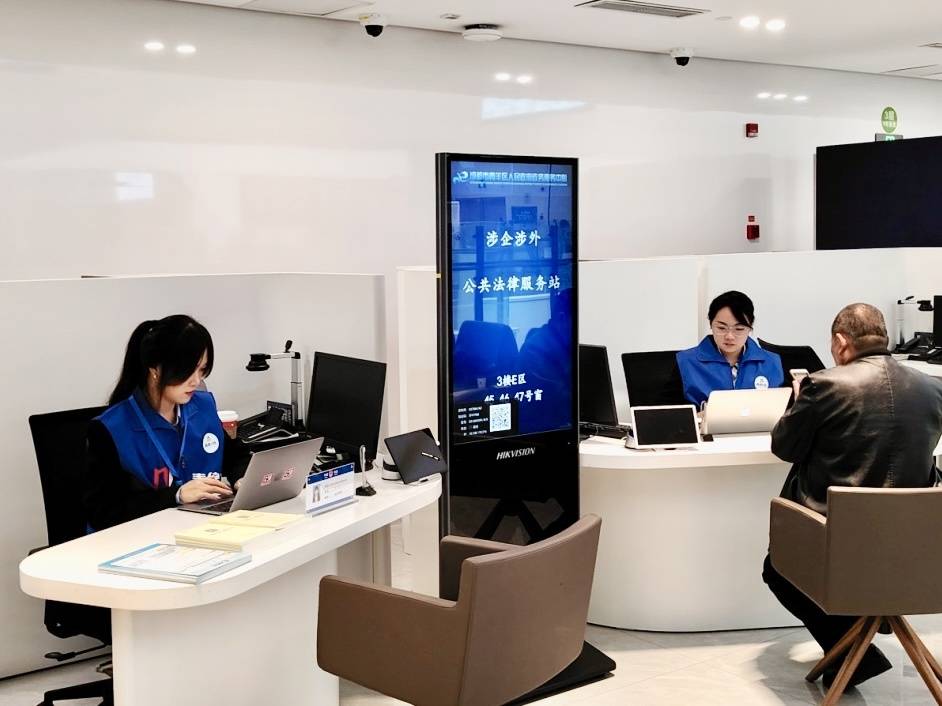 在涉企(涉外)公共法律服务站,值班律师为群众提供咨询服务。青羊区司法局供图