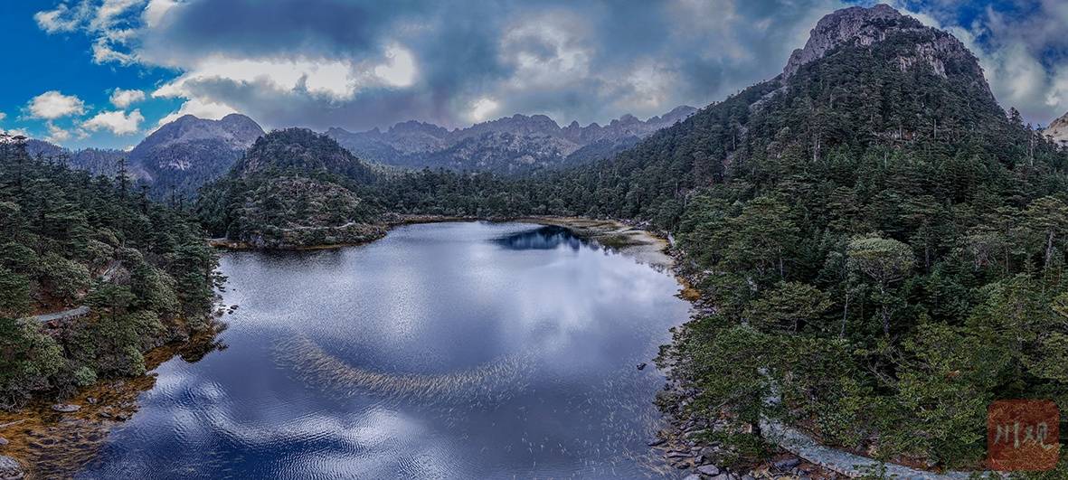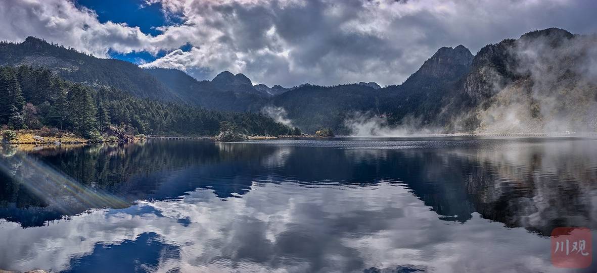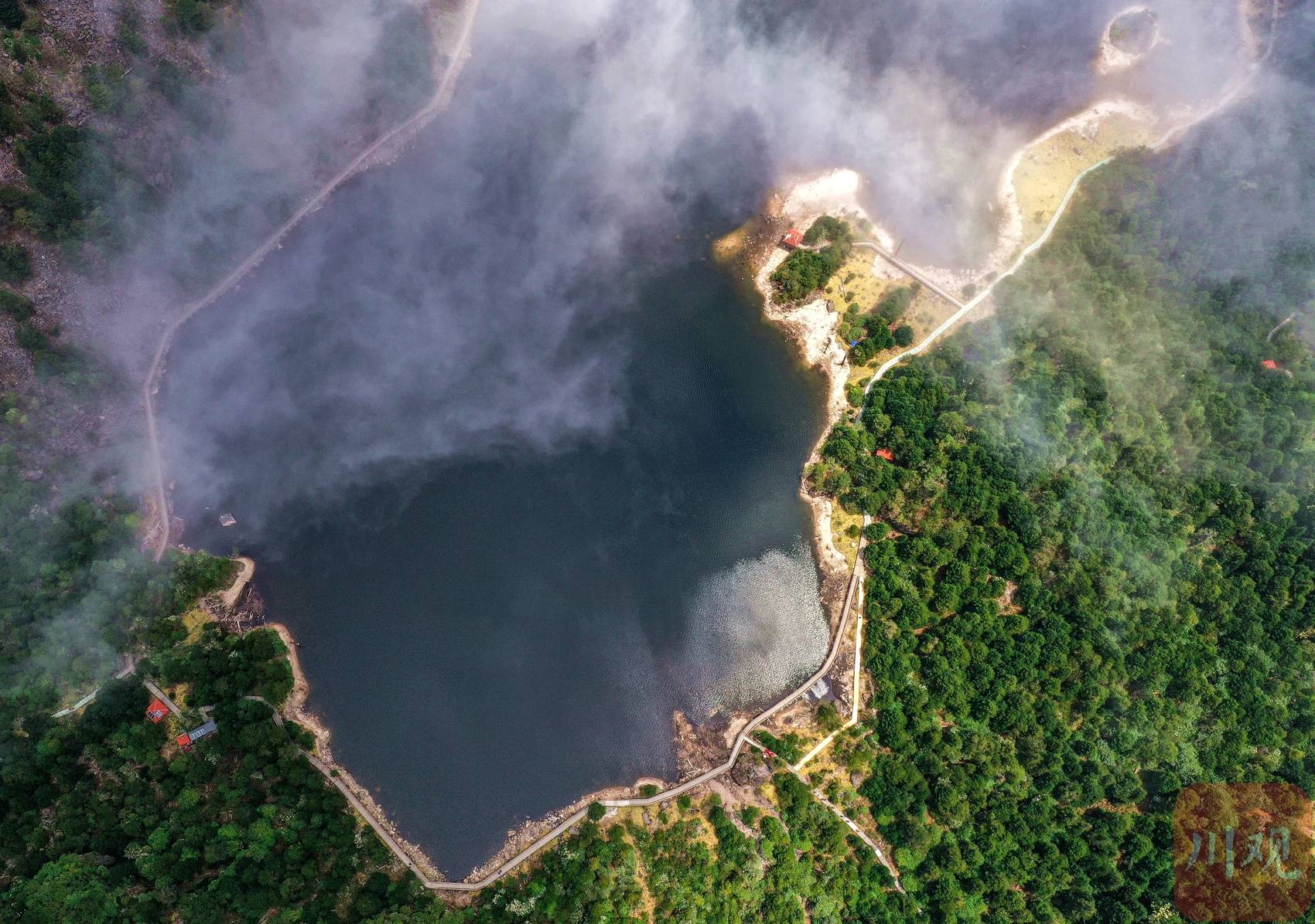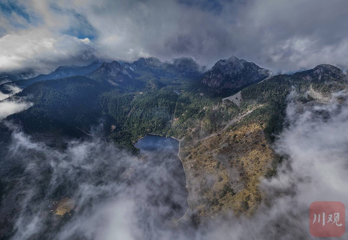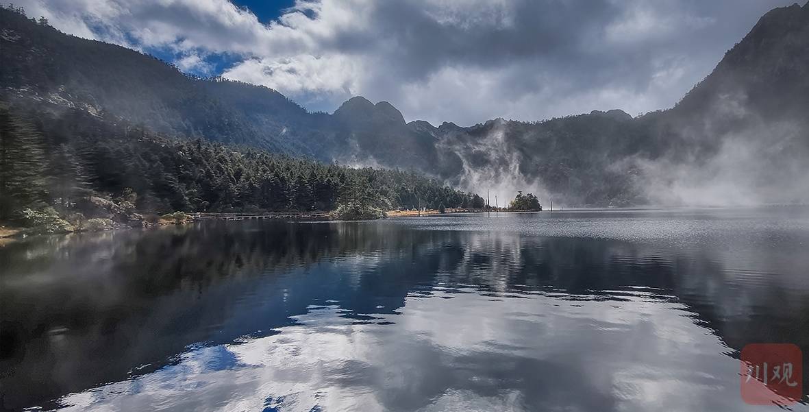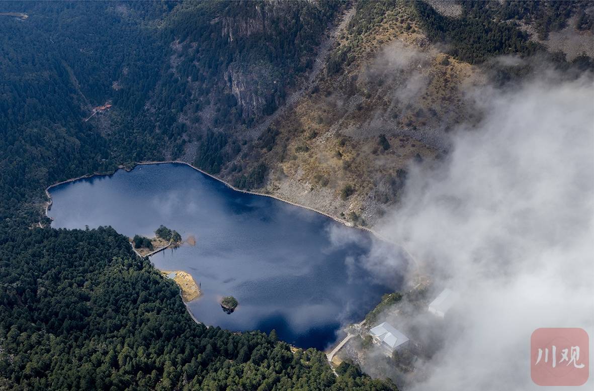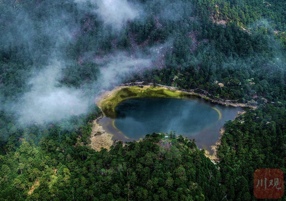 螺髻山中的湖泊云雾缭绕,宛如高原碧玉镶嵌林海间。