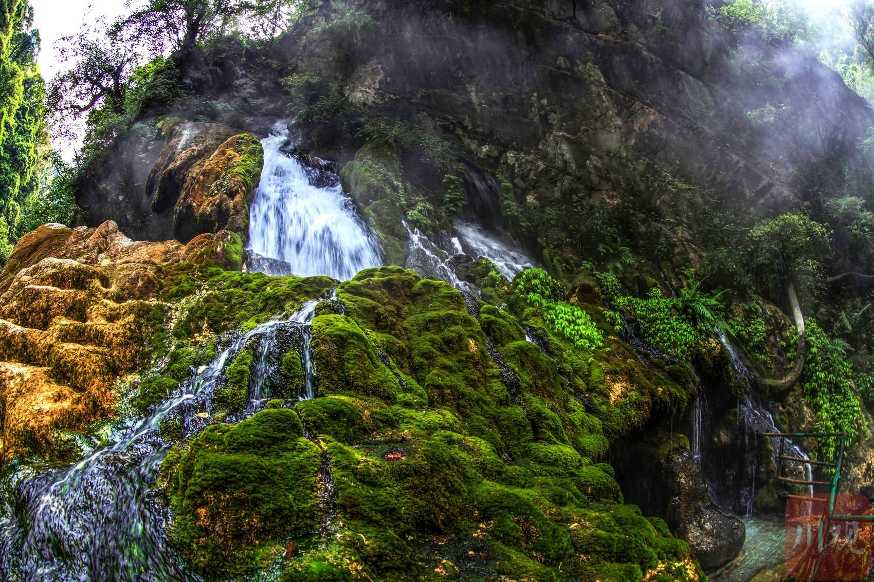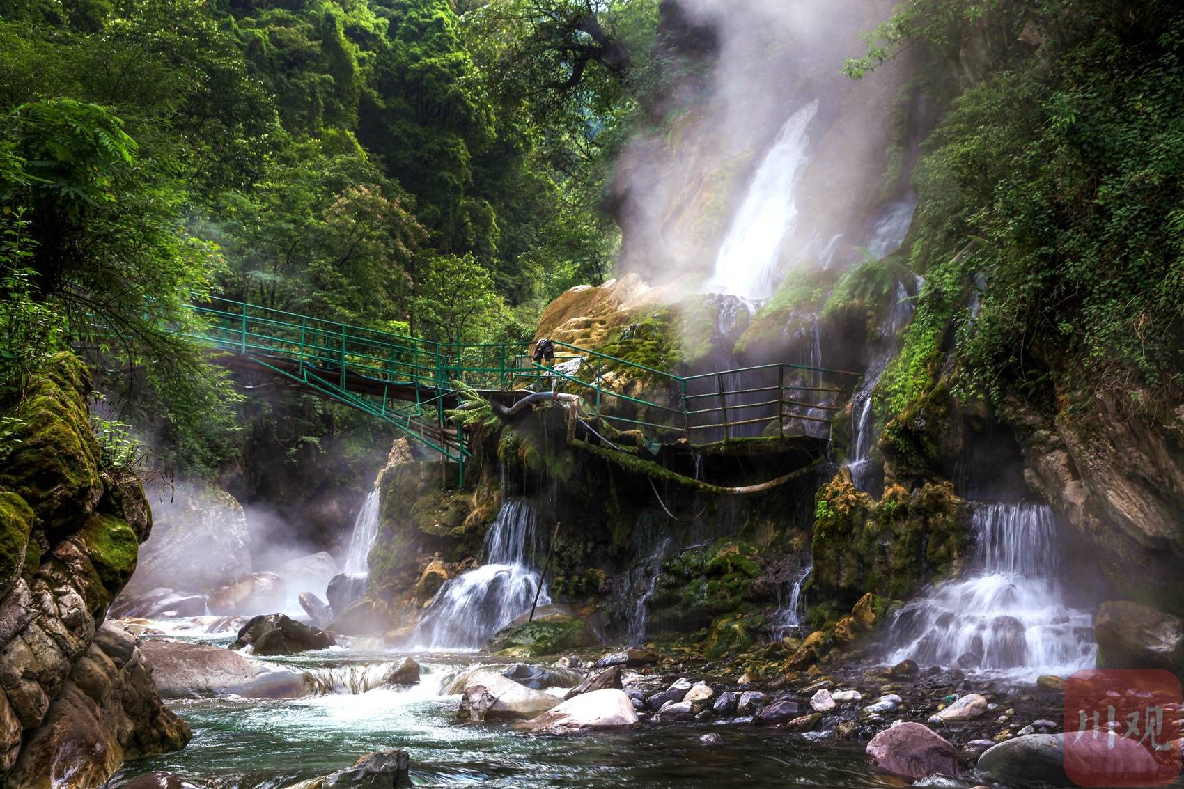 螺髻山温泉瀑布,飞瀑流泉、绿意葱茏。