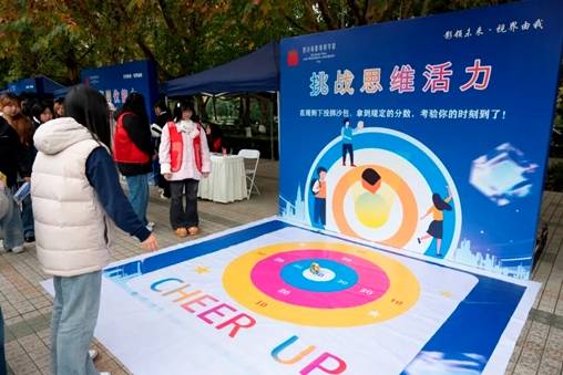 现场,职业体验区成为了大一、大二学生的“职业启蒙乐园”。生涯唤醒区设置了17个趣味游戏,学生们通过集章打卡探索职业方向;职业成长区则引入8大“就业工具箱”,通过模拟面试等互动,帮助学生认知自我、培养职业意识。2025级表演专业的大一新生周敏兴奋地说,“不仅玩了游戏,还做了职业测评,让我对自己未来的方向有了更清晰的认识。”