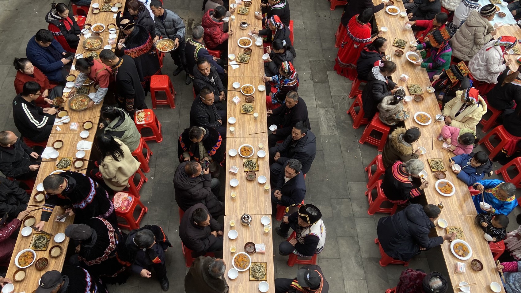 11月22日,叙永县水潦彝族乡海涯村长桌宴。陈兴 摄