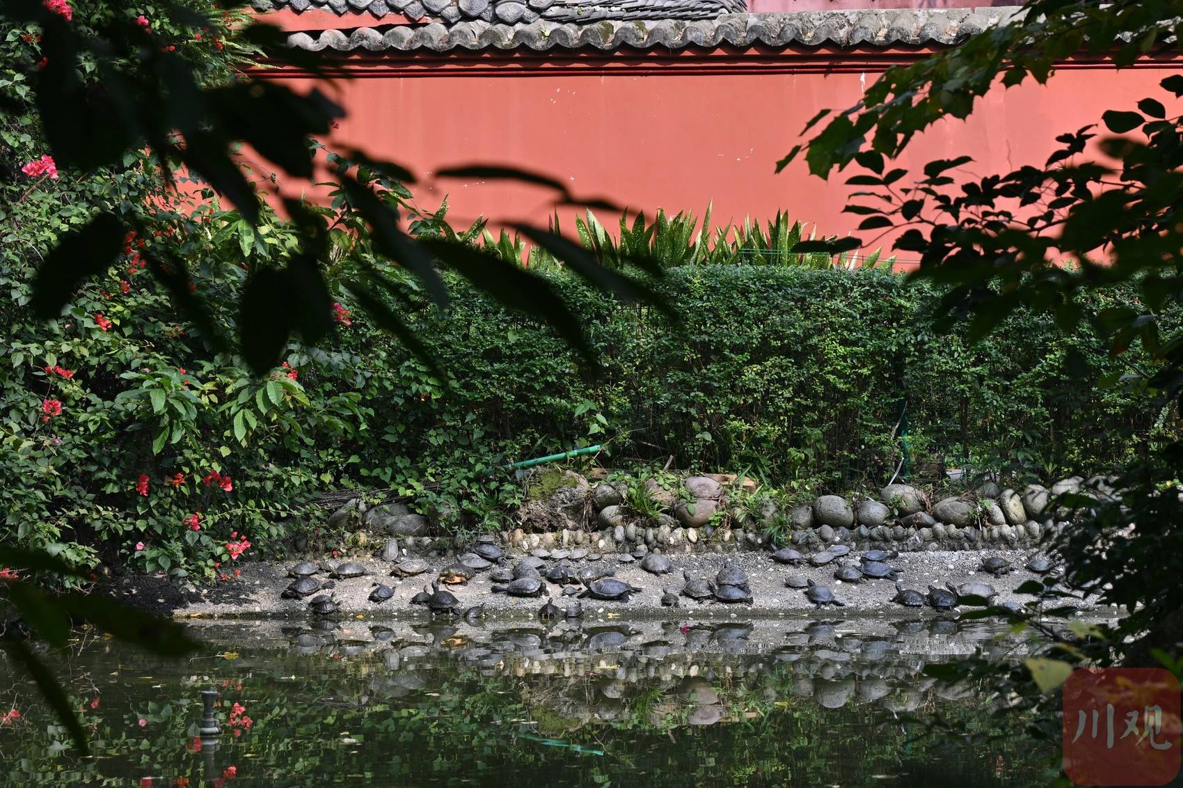11月25日,成都市区天气晴好,阳光慷慨地洒满大地。在这惬意的冬日里,成都文殊院内的应急消防水池边,上演了一场别开生面的“集体日光浴”。池中乌龟纷纷爬上石台,它们伸长脖子,四肢舒展,享受着温暖时光。