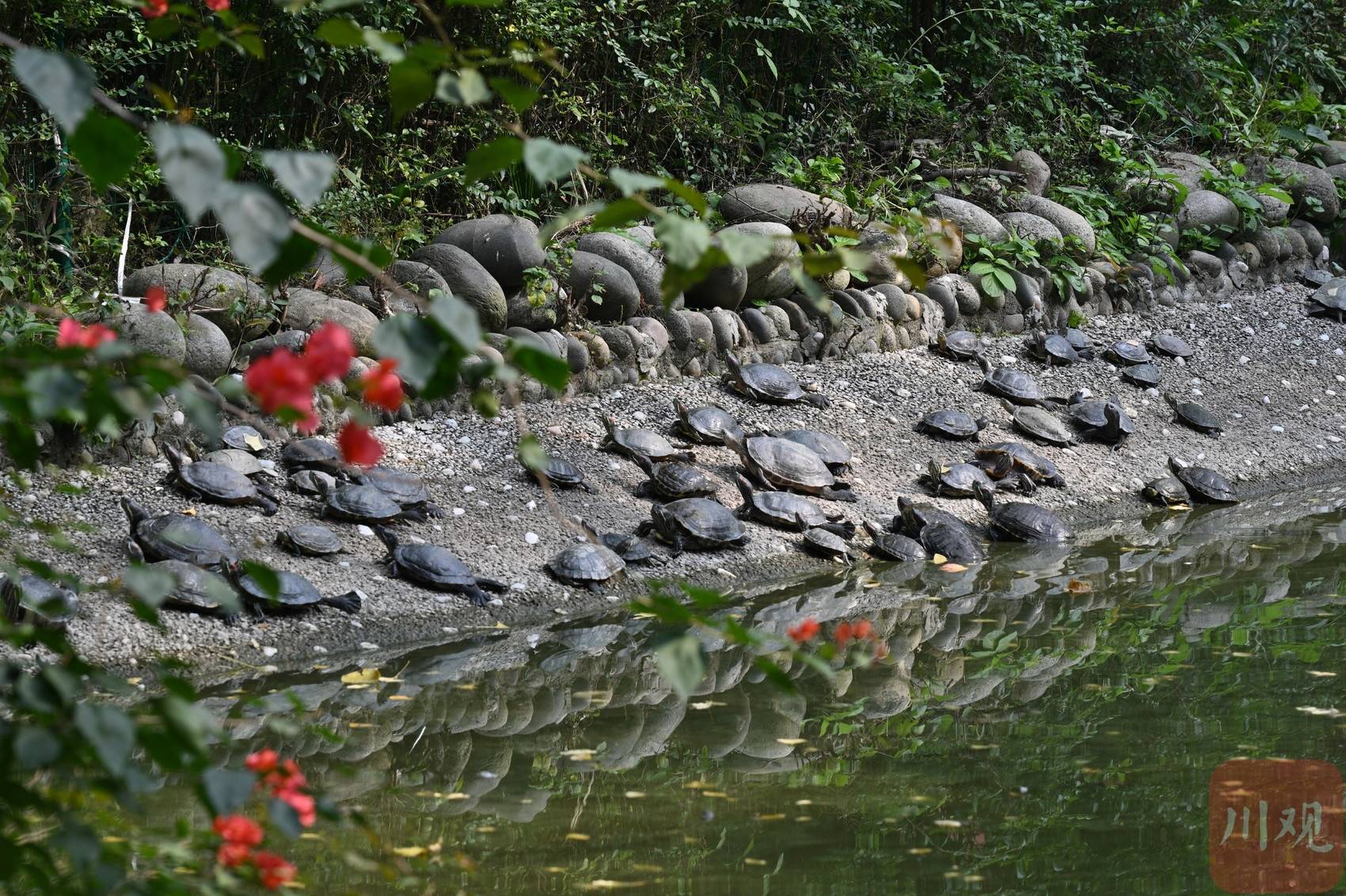 “龟类动物趴在岸边或石头上晒太阳,这种看似慵懒的行为被称为‘晒背’,是它们一项至关重要的本能生理习性。”中国科学院成都生物研究所生物多样性保护中心副主任齐银表示,作为变温动物,龟类动物无法自行维持恒定体温,它们依赖阳光提升体温,从而“激活”身体机能,增强新陈代谢、活动能力并促进消化。