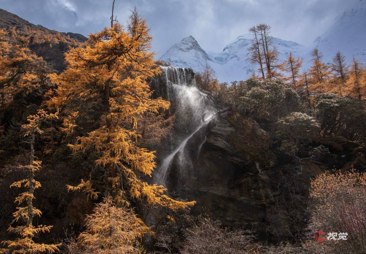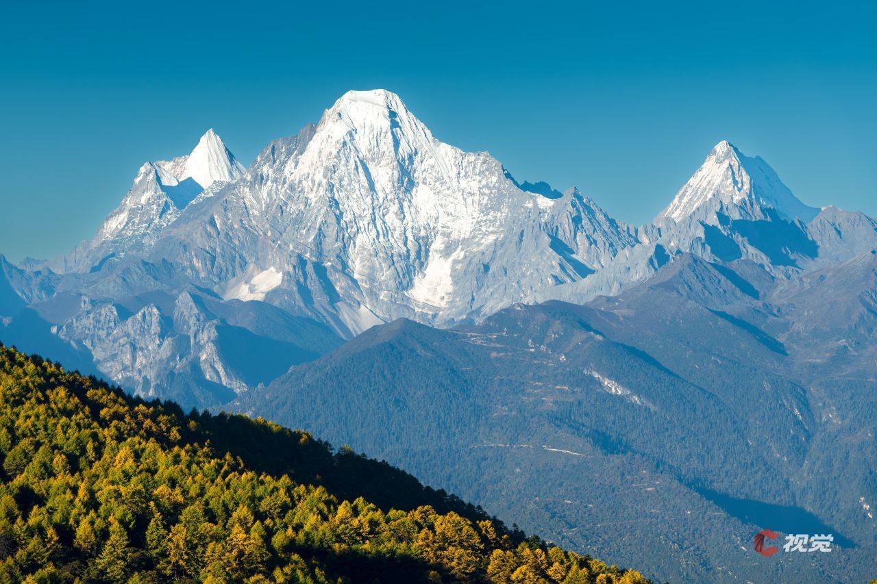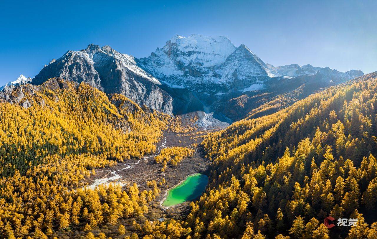 皑皑白雪的央迈勇与脚下尽染的金色彩林,构成了一幅秋日胜景图。C视觉签约摄影师 王治