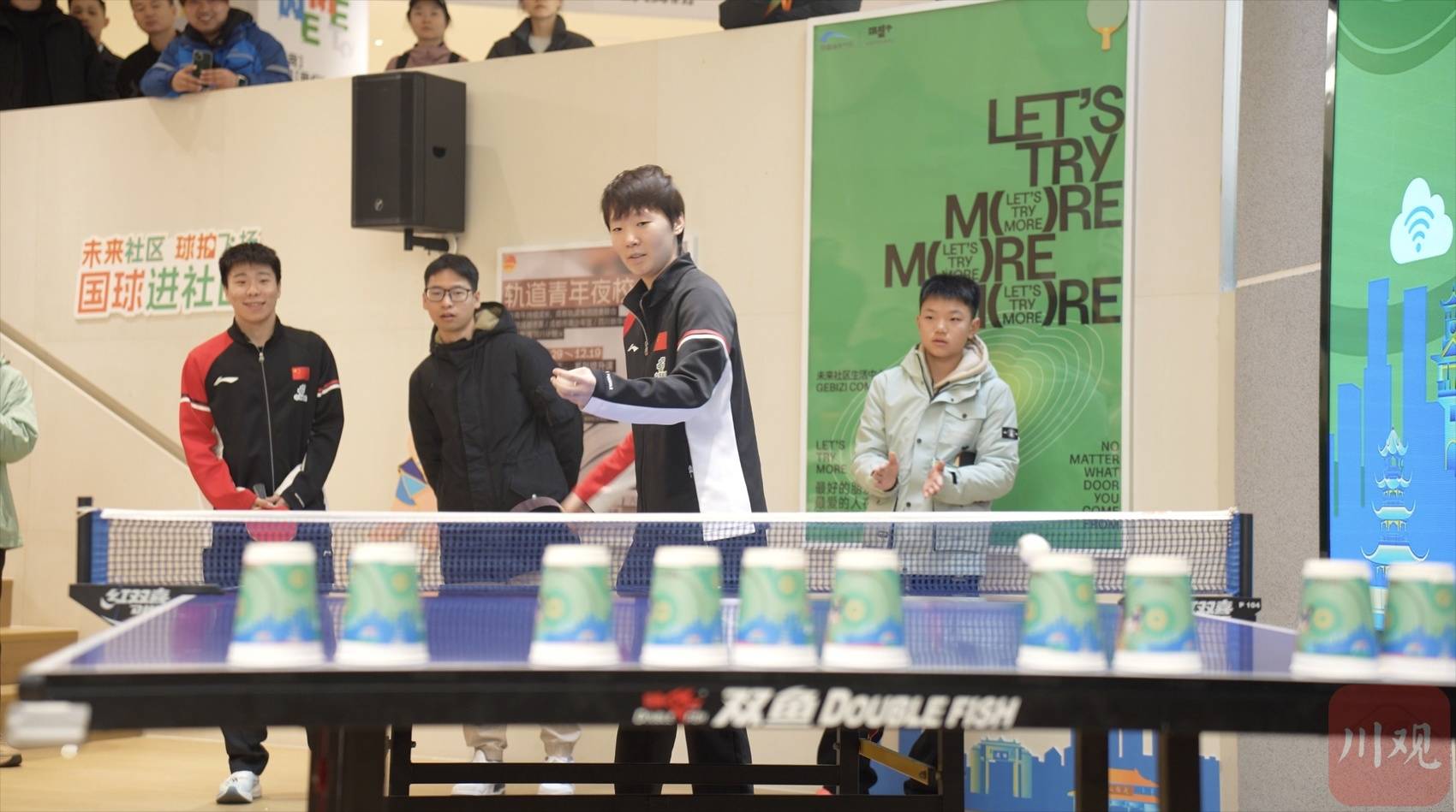 11月30日至12月7日,2025年成都国际乒联混合团体世界杯将在成都举行。11月27日,中国乒乓球队运动员王曼昱、林诗栋、徐瑛彬、薛飞、徐奕、陈熠现身成都武侯,在“隔壁子”未来社区生活中心与社区居民零距离互动。