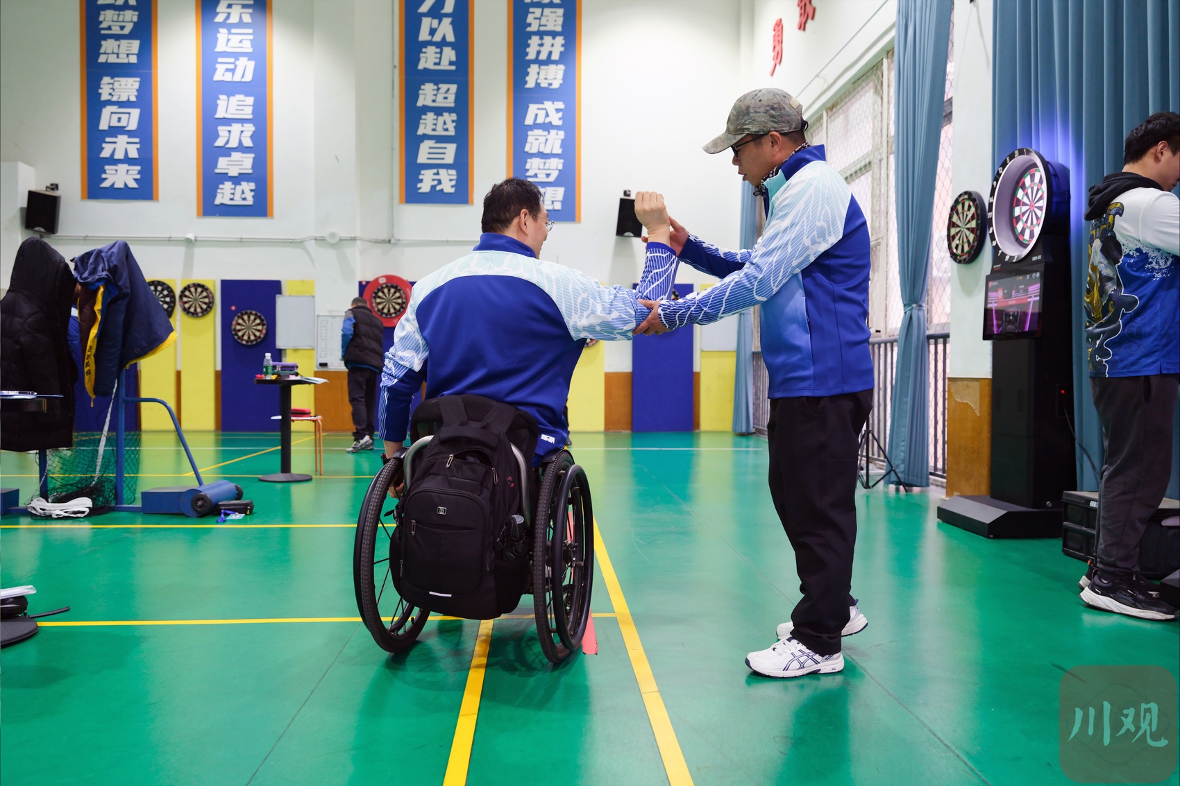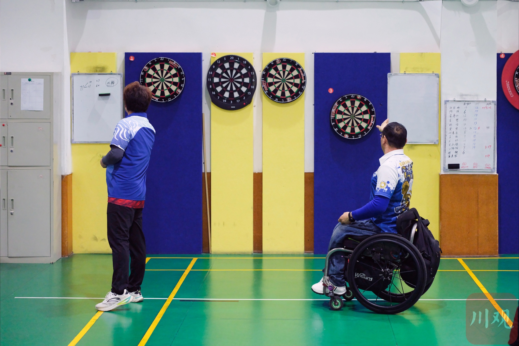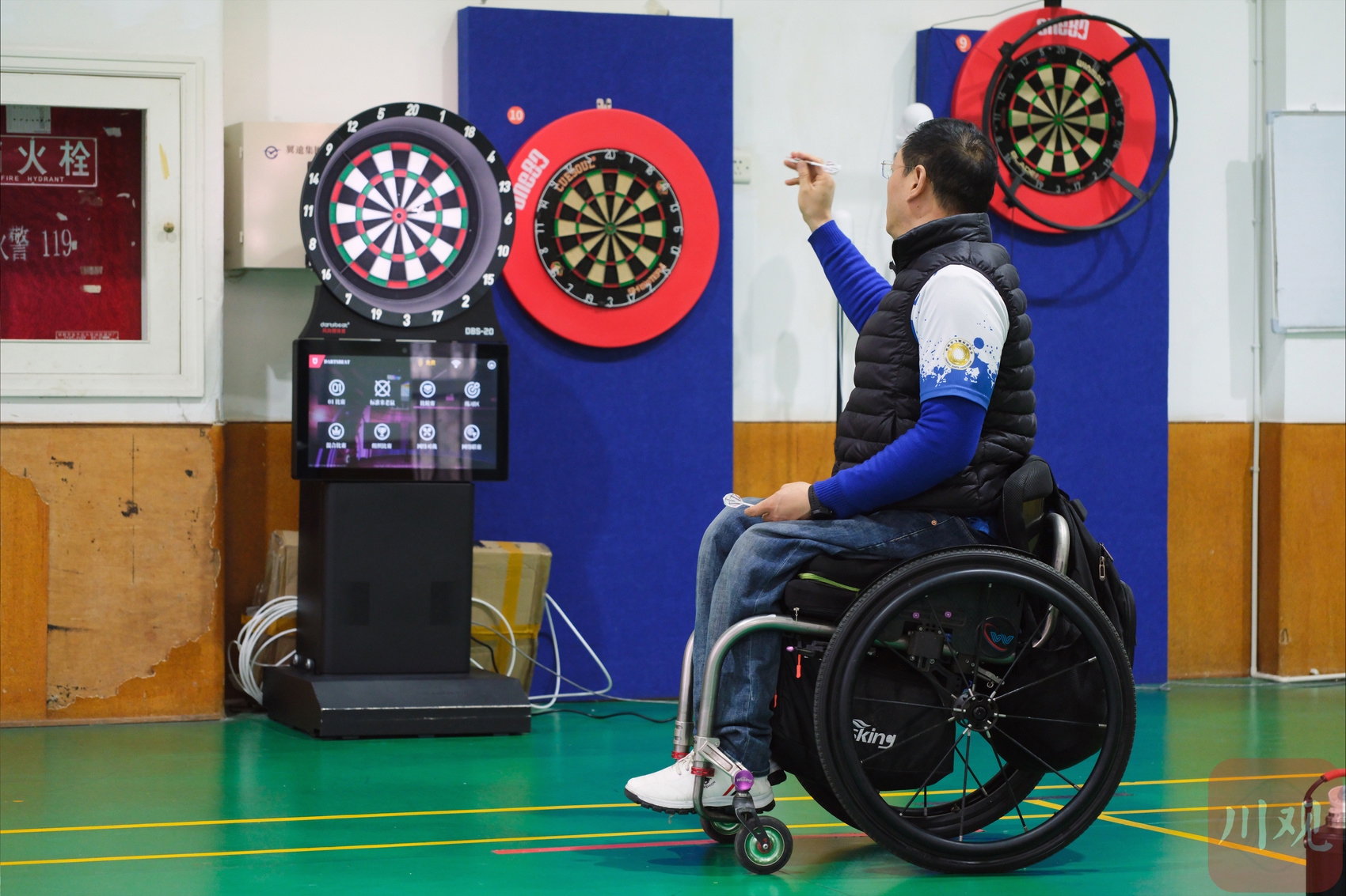 11月27日,成都市残疾人飞镖训练基地内,飞镖破空声与中靶声此起彼伏。四川残疾人飞镖队正在这里进行高强度集训,为全国第十二届残疾人运动会做最后冲刺。