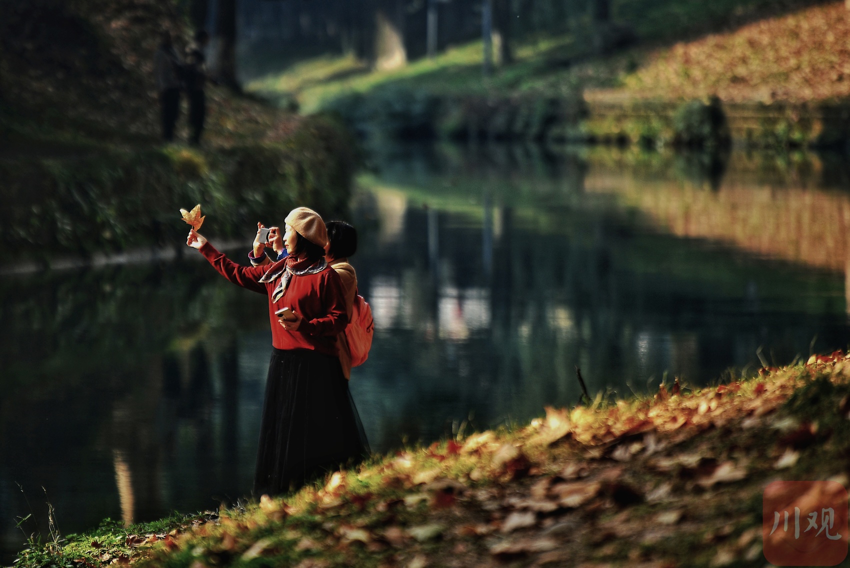四川在线记者在现场看到,沙河两岸梧桐树高大茂盛,金黄的叶片在阳光下泛着温暖的光泽,与清澈的河水、偶尔掠过的鹭鸟相映成趣,构成一幅生动的冬日画卷。不少市民手持相机或手机,或在树下捕捉斑驳光影,或手举落叶与景同框,欢快萦绕整片河岸。