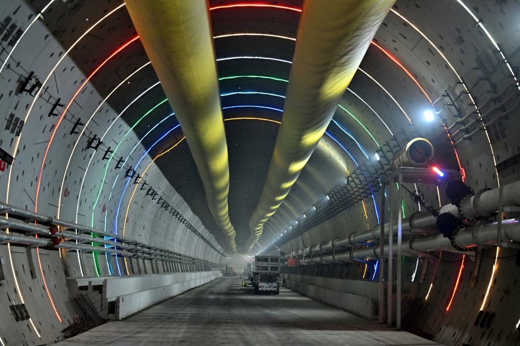 11月27日拍摄的津潍高铁津沽海河隧道。