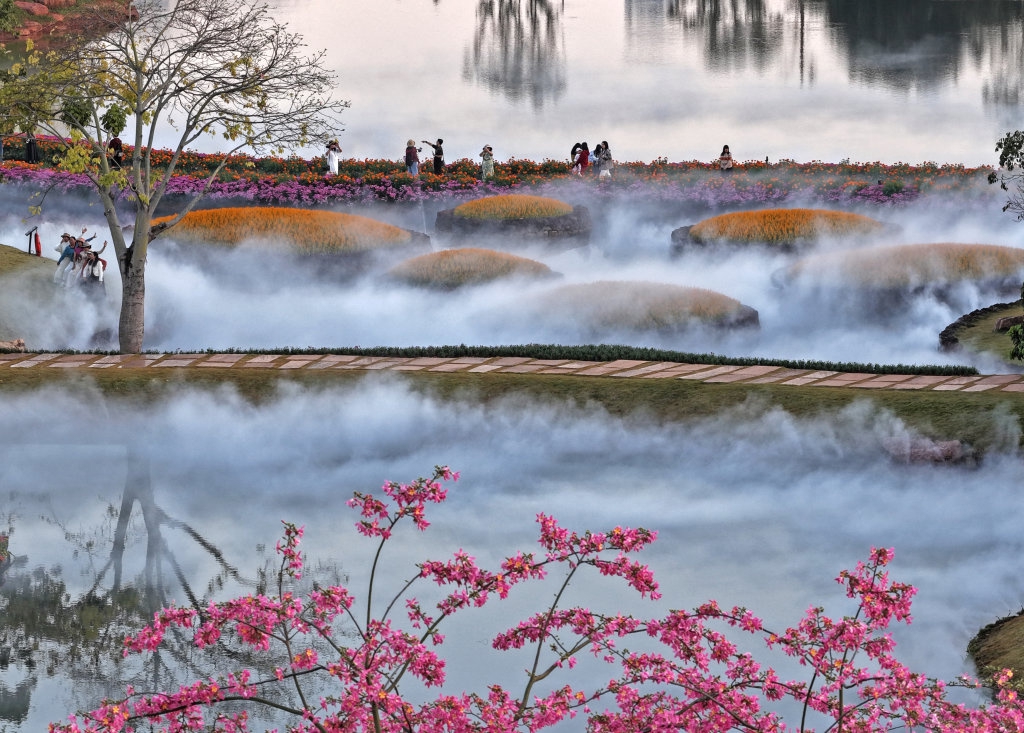 连日来,广西南宁市迎来晴好天气。冬日暖阳下,南宁市青秀山风景区丘石花园内盛开的鲜花格外艳丽。