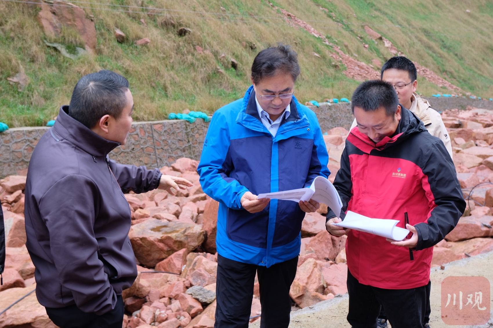 专家正在一线核对验收荥经项目情况。