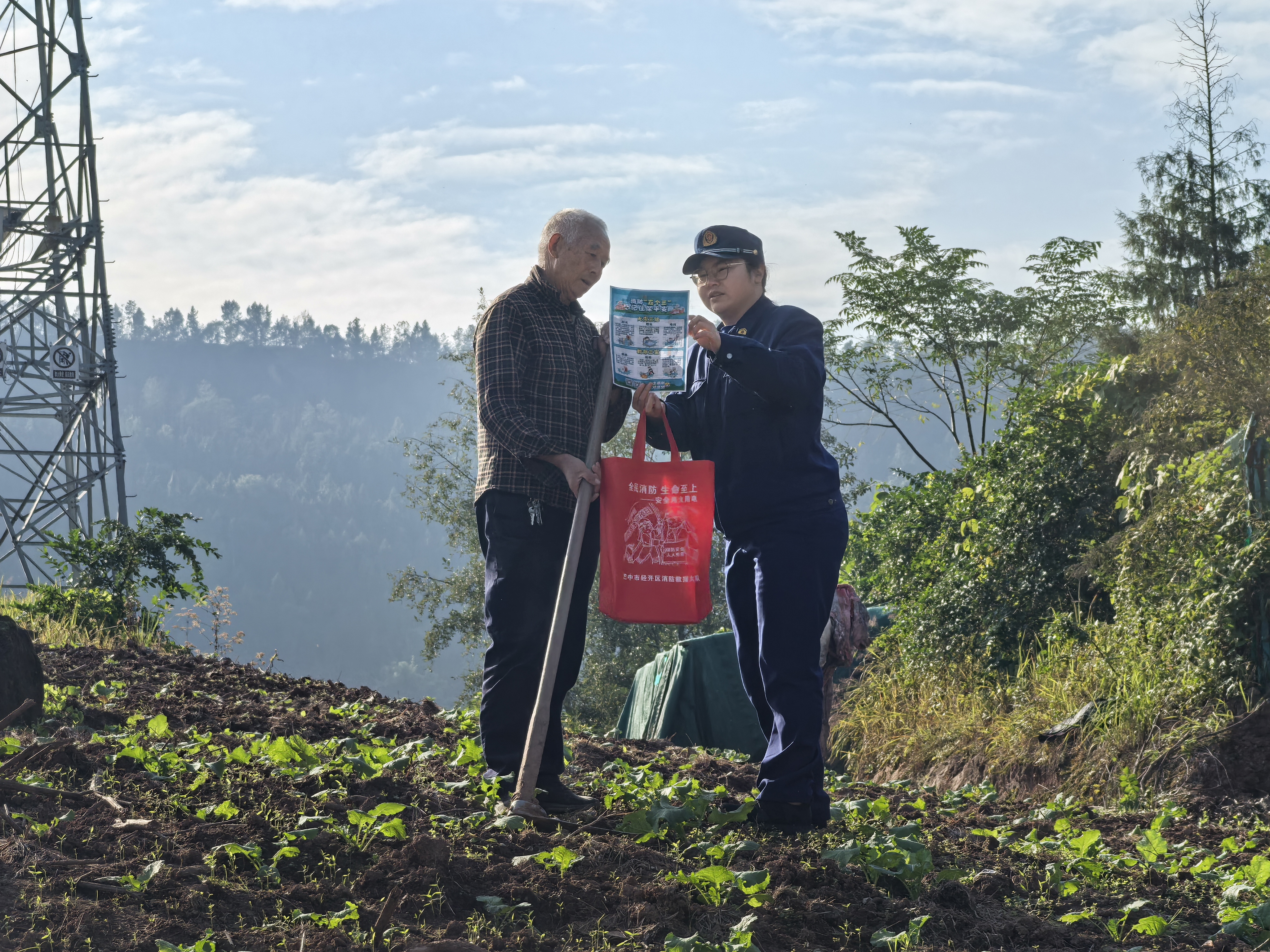 巴中市消防员到辖区农村开展防消联勤,向老人宣传消防知识。