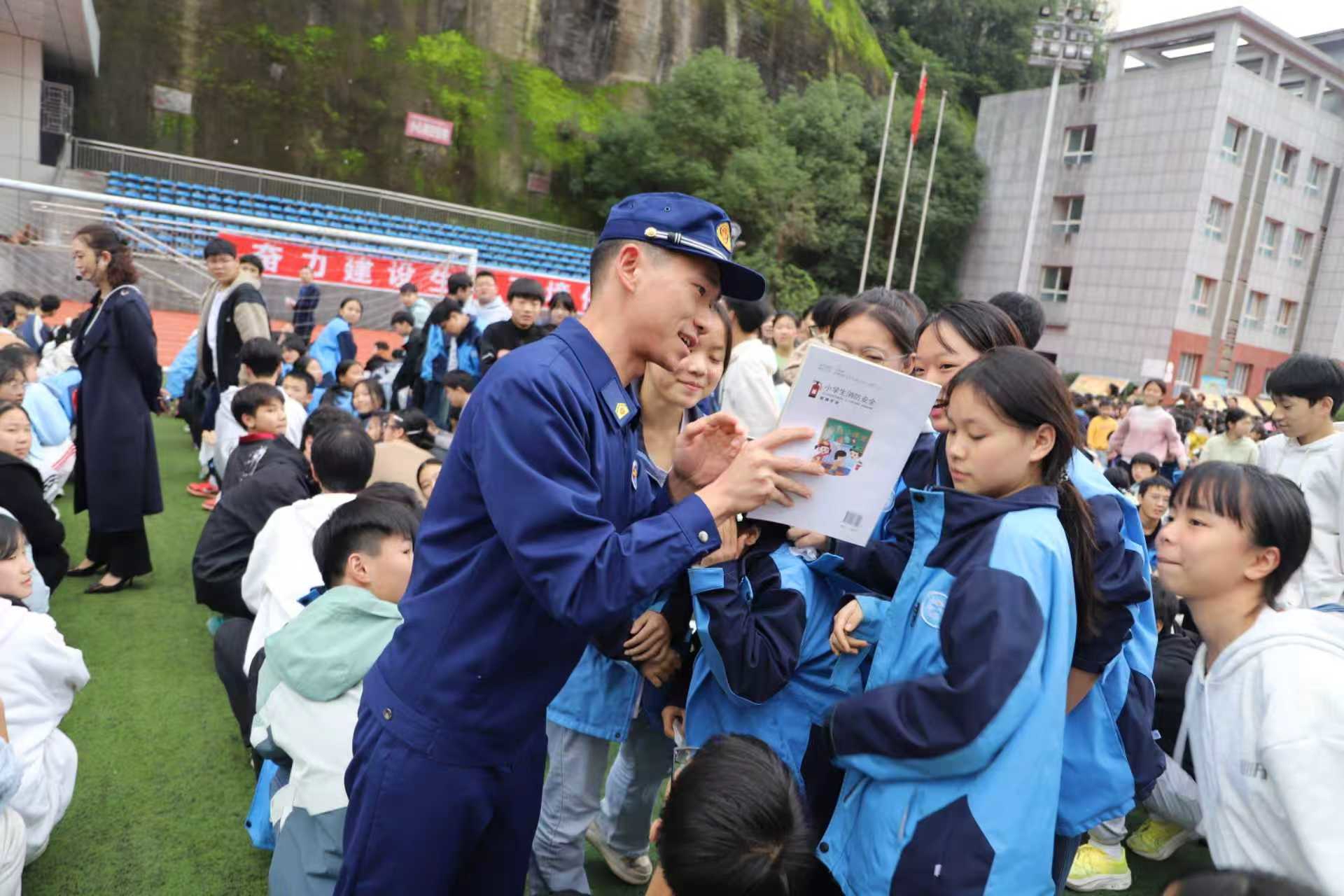 巴中市消防员进入辖区学校科普消防安全知识。