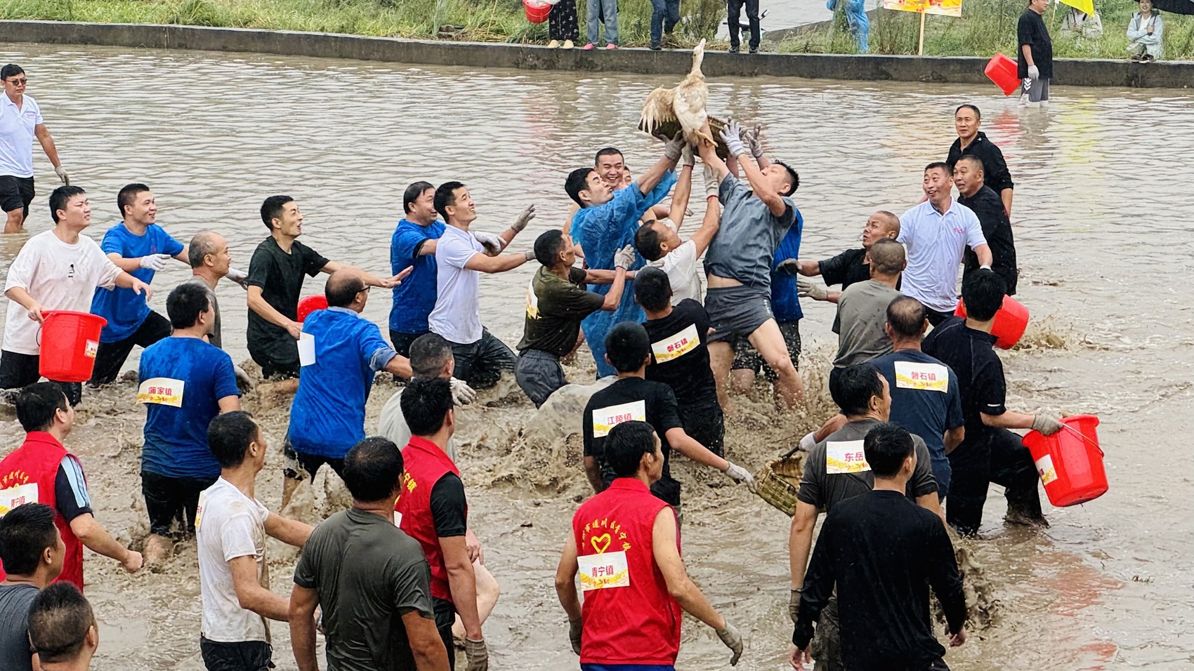 在金石镇举办的通川区庆祝2025年中国农民丰收节活动,群众在抓鸭子。通川区融媒体中心供图