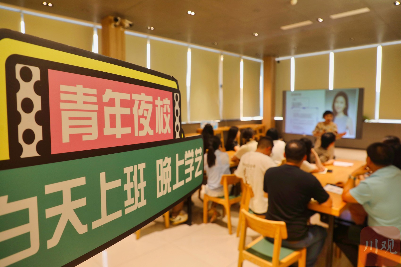 泸州市龙马潭区,年轻人正在青年夜校内进行“短视频创作运营”课程的学习。 杨尚威 摄(C视觉)