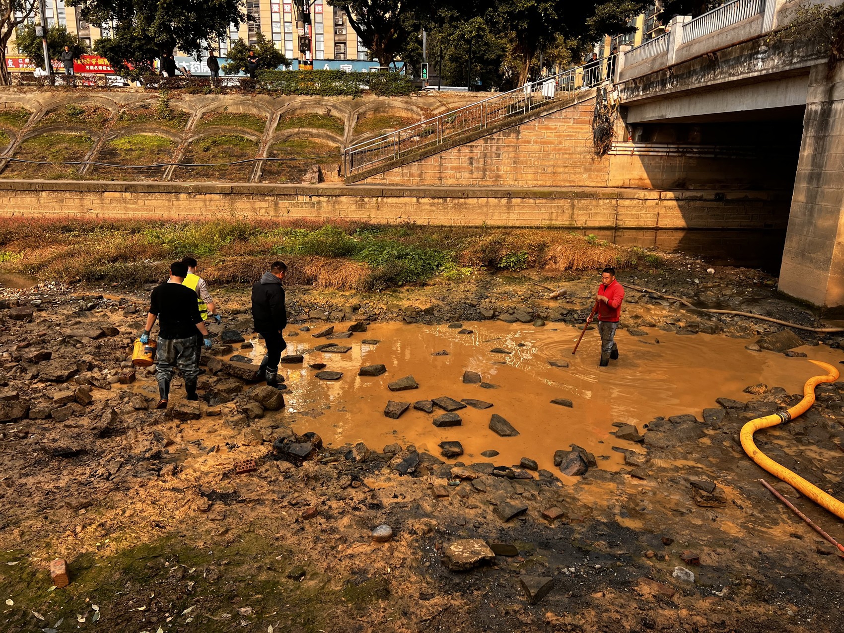 据赵涛介绍,泥浆水是禁止排放下河的。11月24日,龙泉驿区水务、住建等部门启动监管执法程序,对项目施工方——四川航天建筑有限公司下达了《责令限期改正通知书》,要求该公司在11月25日前清理该段管道内泥浆,清理流入陡沟河的泥浆水,水务、住建、属地街道办持续跟进督促,企业也明确表达会积极配合、迅速整改。