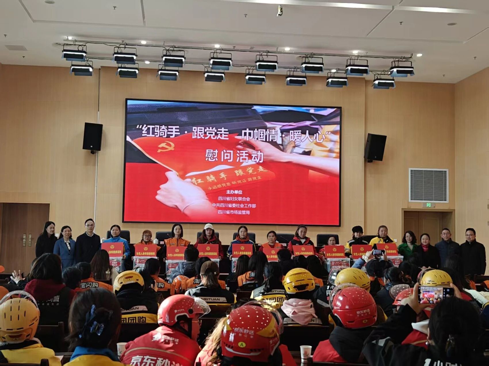 记者11月28日从四川省妇联获悉,日前,省妇联联合省委社会工作部、省市场监管局在四川省妇女儿童中心开展“红旗手·跟党走,巾帼情·暖人心”新就业群体慰问活动,为女骑手等新就业群体送去慰问品并赠送女性关爱保险。