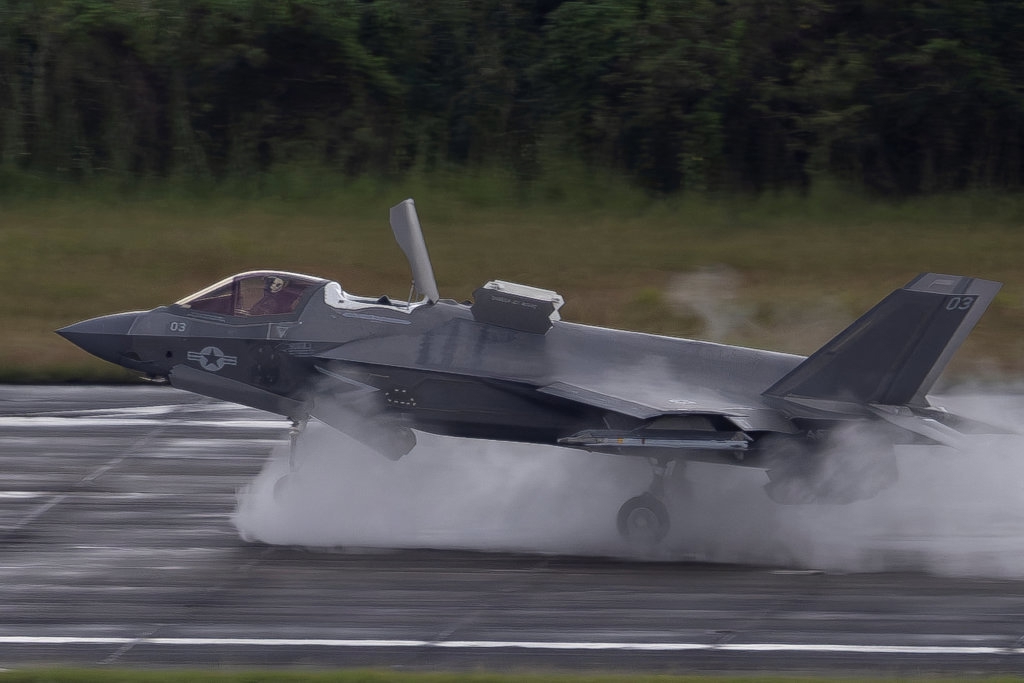 11月25日,一架美国F-35战机在波多黎各塞瓦一处军事基地降落。图据新华社/路透