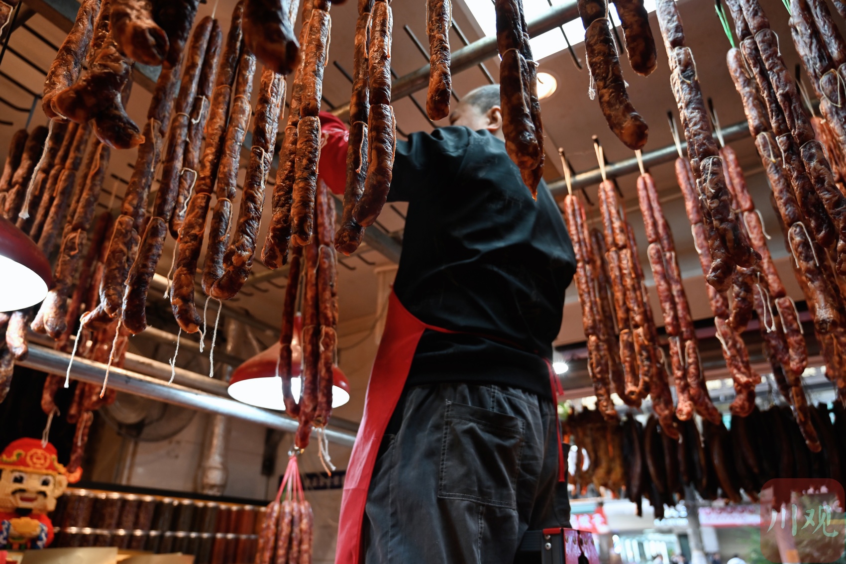 店家在挂装好的香肠