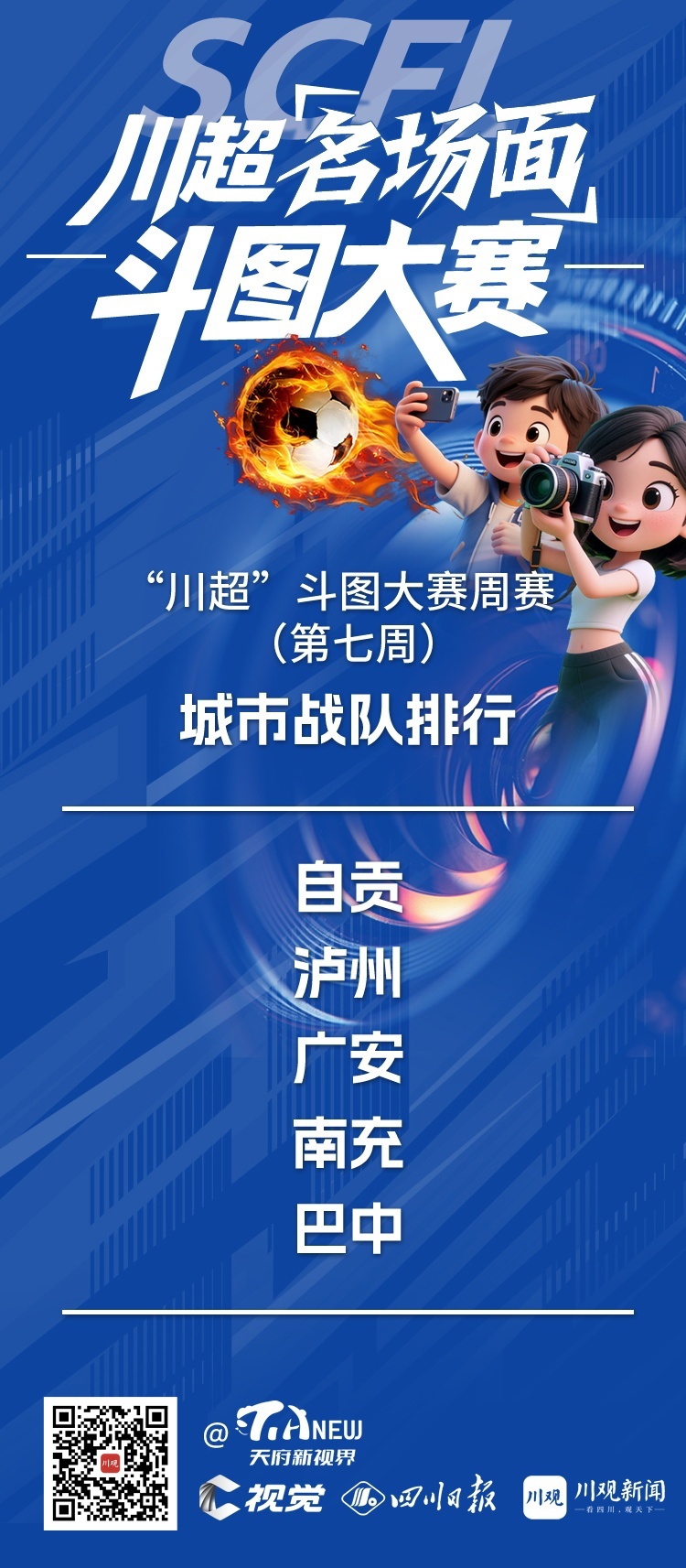 日前,“川超”第一阶段已收官,总决赛明年3月拉开大幕。休赛不冷场,“斗图”精彩继续上演。由四川日报·川观新闻、C视觉、天府新视界发起的“‘川超’名场面斗图大赛”持续进行中,第七周周赛展播点赞(11月24日—29日)正式收官,第七周作品排名与城市战队排名出炉,快来感受球迷的热爱与城市的荣光。
