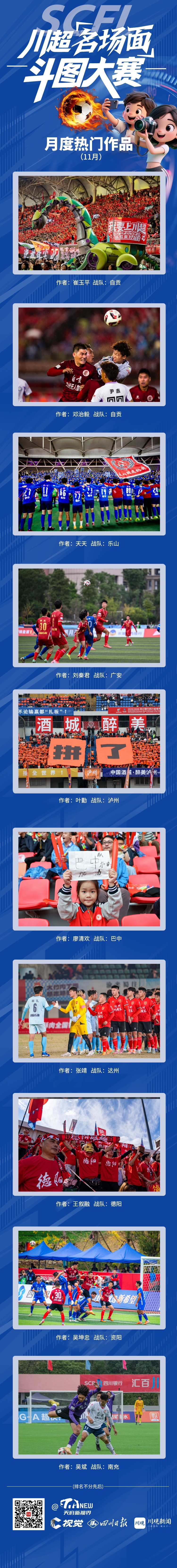 截至11月29日零点,周赛(第七周)点赞环节告一段落,在近百件参赛作品中,经过全川球迷的热情投票以及专业人士评分,第七周十佳作品脱颖而出: