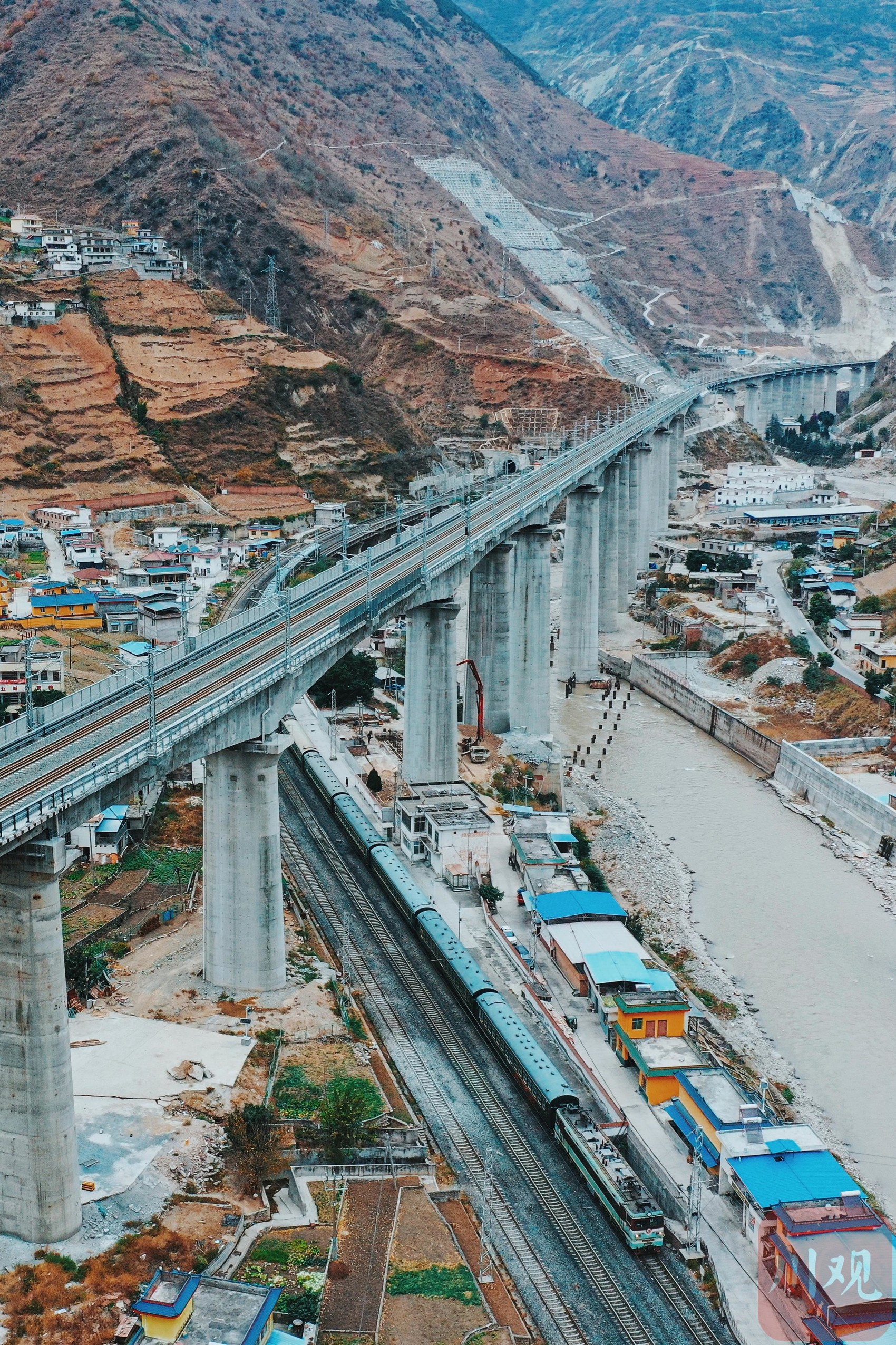 韶山3型电力机车牵引下的“慢火车”行驶在大凉山。