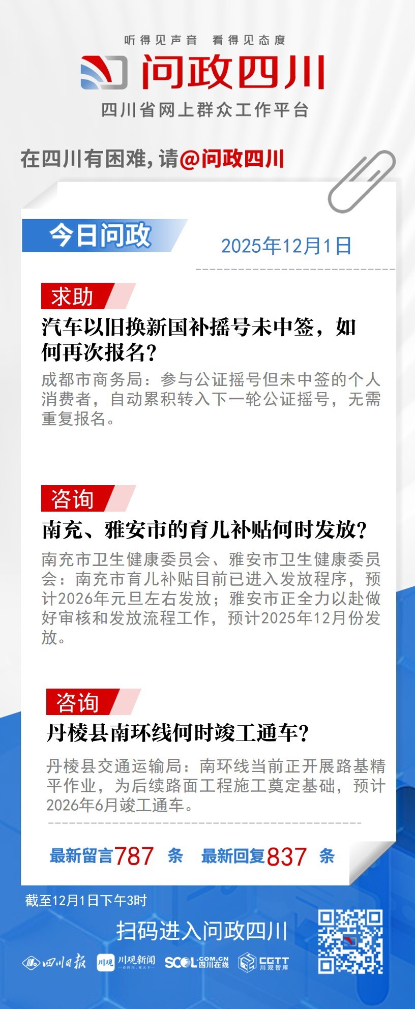 多位问政四川网友提问(综合):请问南充市、雅安市的育儿补贴何时能发放?