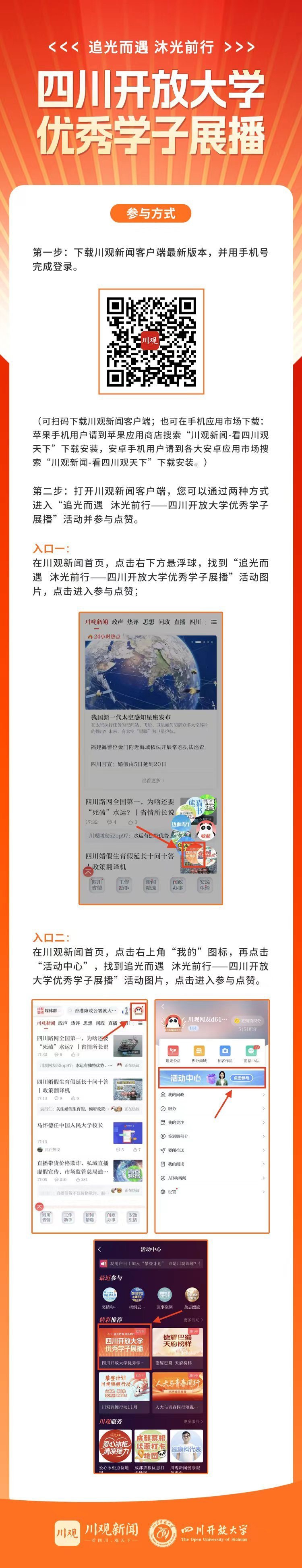 此次展播活动将通过川观新闻客户端推出,以图文、视频等多种形式,生动展现这批优秀学子如何在各自领域追逐光、成为光、散发光。他们的故事,不仅是个人奋斗的缩影,更是四川开放大学“开放共享 育达终身”办学理念的鲜活注脚,体现了学校在服务全民终身学习、赋能地方发展中所发挥的积极作用。