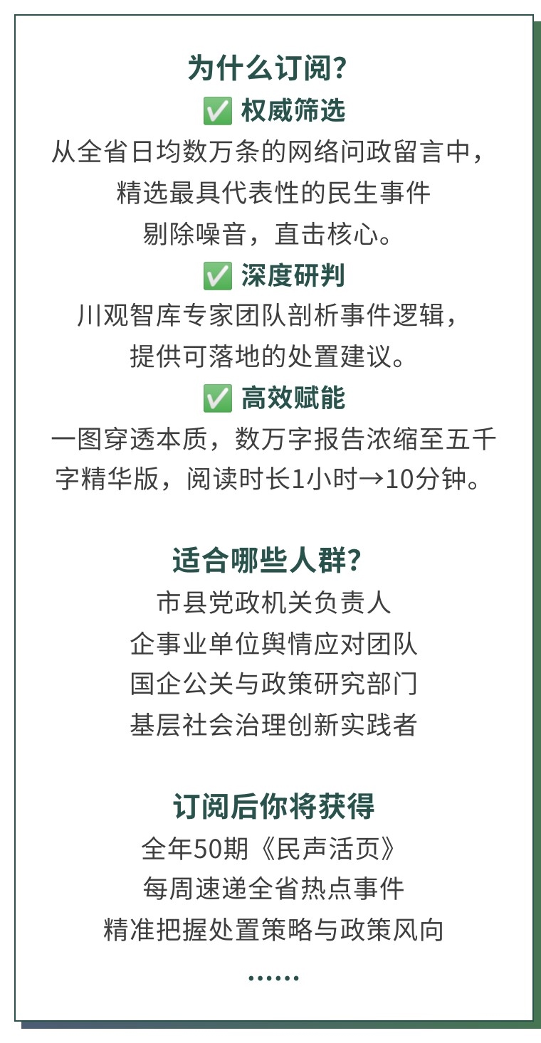 目前,《民声活页》已在川观新闻客户端底部导览“问政办事”开设专栏。即日起至2025年12月31日,产品面向全网开启限时免费订阅。