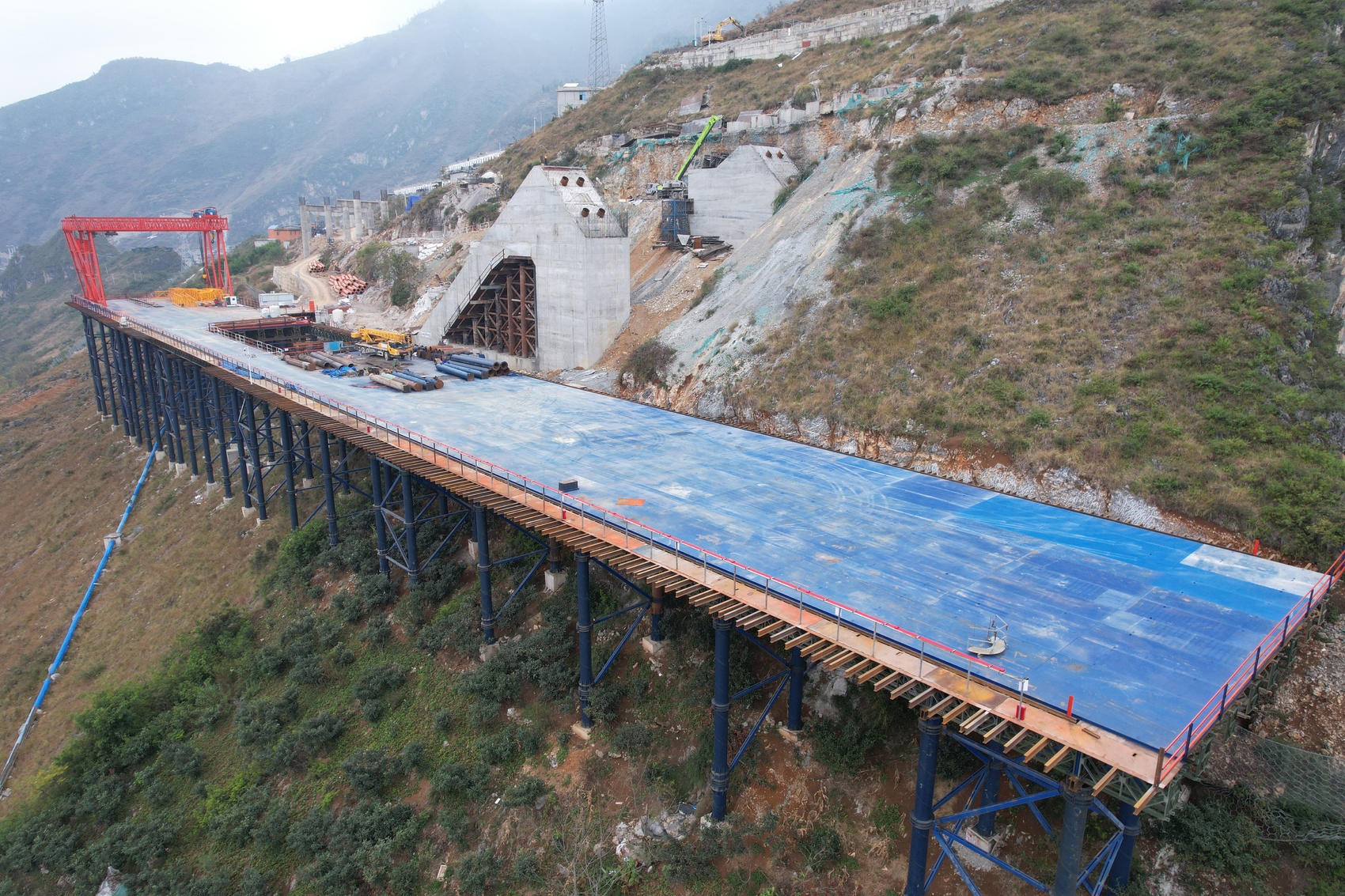 为顺应陡峭斜坡地形,施工团队在国内首创非对称高低主拱设计。蜀道集团川高公司沿江宜金公司雷波代表处处长曾泳太介绍,非对称高低主拱设计的创新性在于,利用横向内外侧主拱的非对称设计来主动适应陡斜坡地形,并因地制宜采用马蹄式、三竖桩式及斜桩竖桩混合式三种不同的拱座结构形式支撑主拱设计。这种“量身定制”的设计,完美适应了峡谷两岸不平顺的地形与复杂地质。