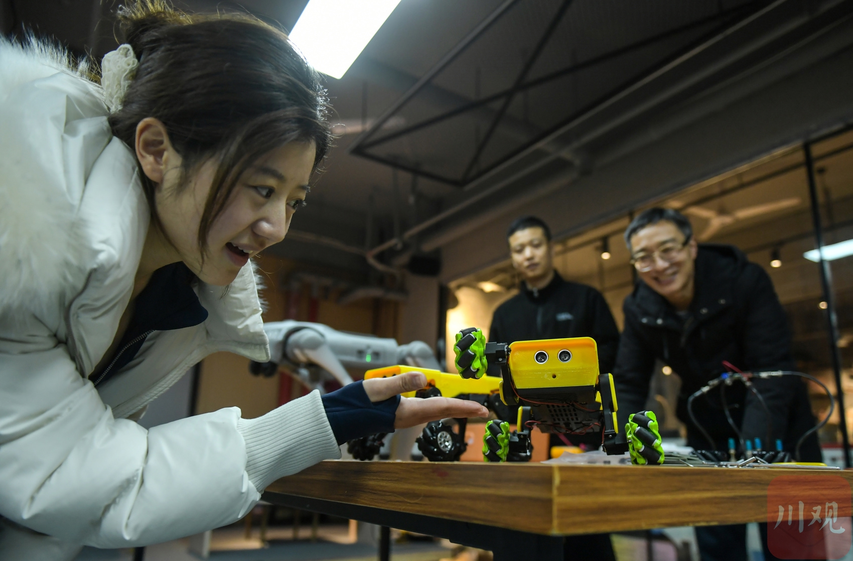 2025年12月2日,在位于四川省成都市双流区的电子科大科技园(天府园)成电创客基地,科创团队成员对研发的“AI扫地机器人”进行通信控制实验。