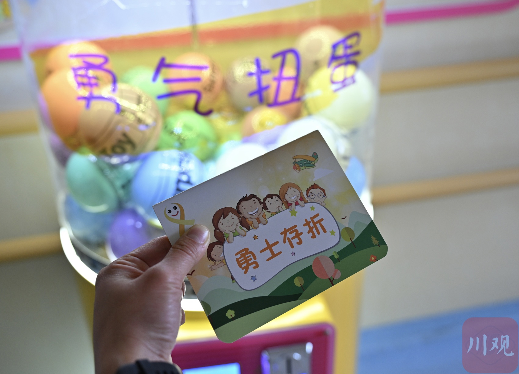 “小朋友每次打针不哭、积极配合治疗,就能在‘勇气存折’上获得一个印章。集满五个印章,就能赢得一次抽取扭蛋的机会。”该科室护士长张娴看着小患者们,露出温柔的笑容。