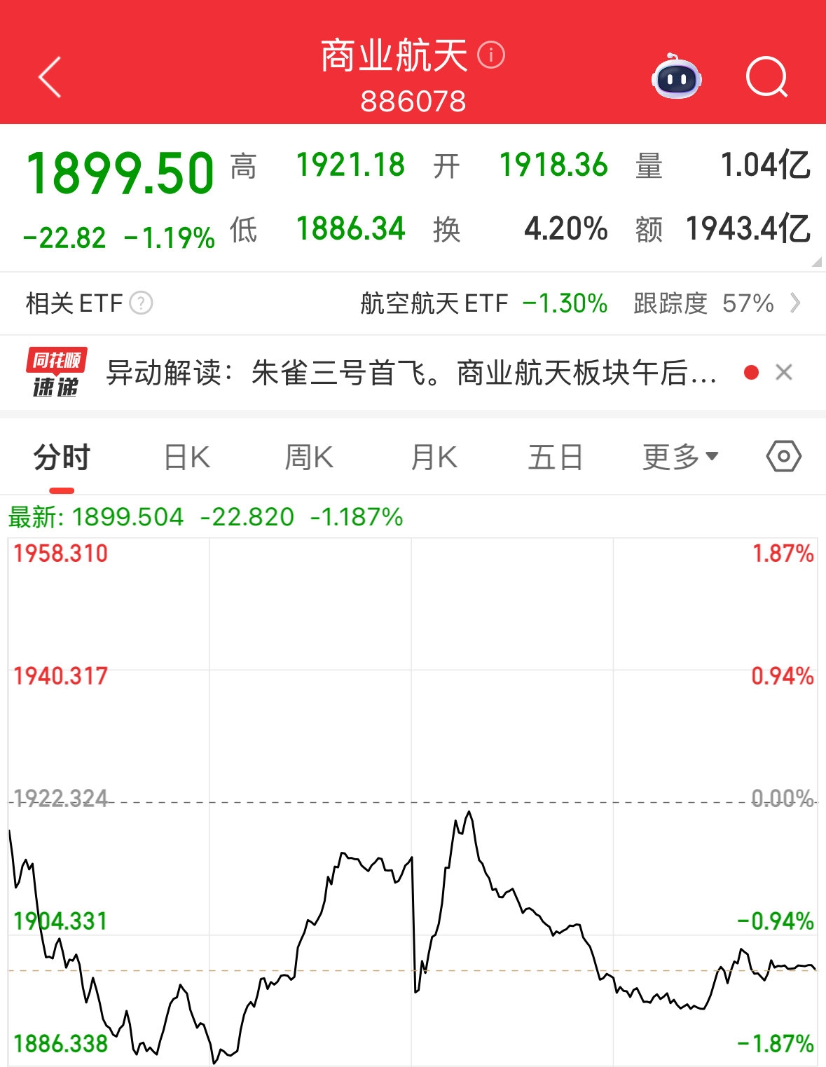 今日最刺激的莫过于商业航天板块。早盘还很低调的板块,临近午间突然“直线拉升”。消息面上,今日午间,朱雀三号遥一运载火箭在东风商业航天创新试验区发射升空。