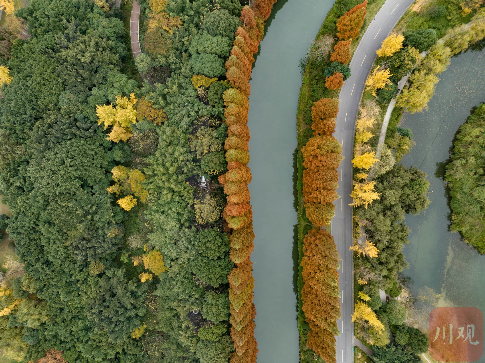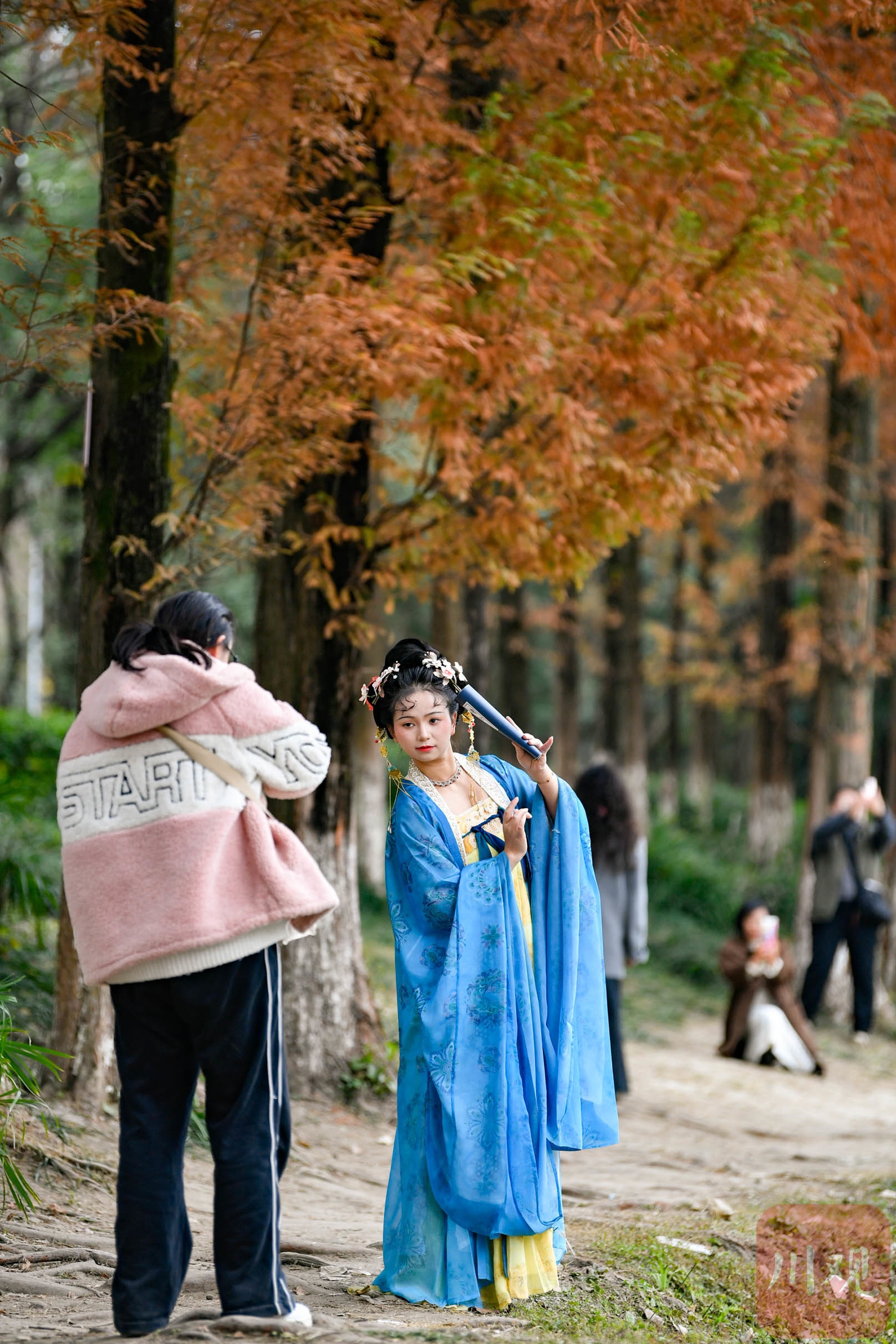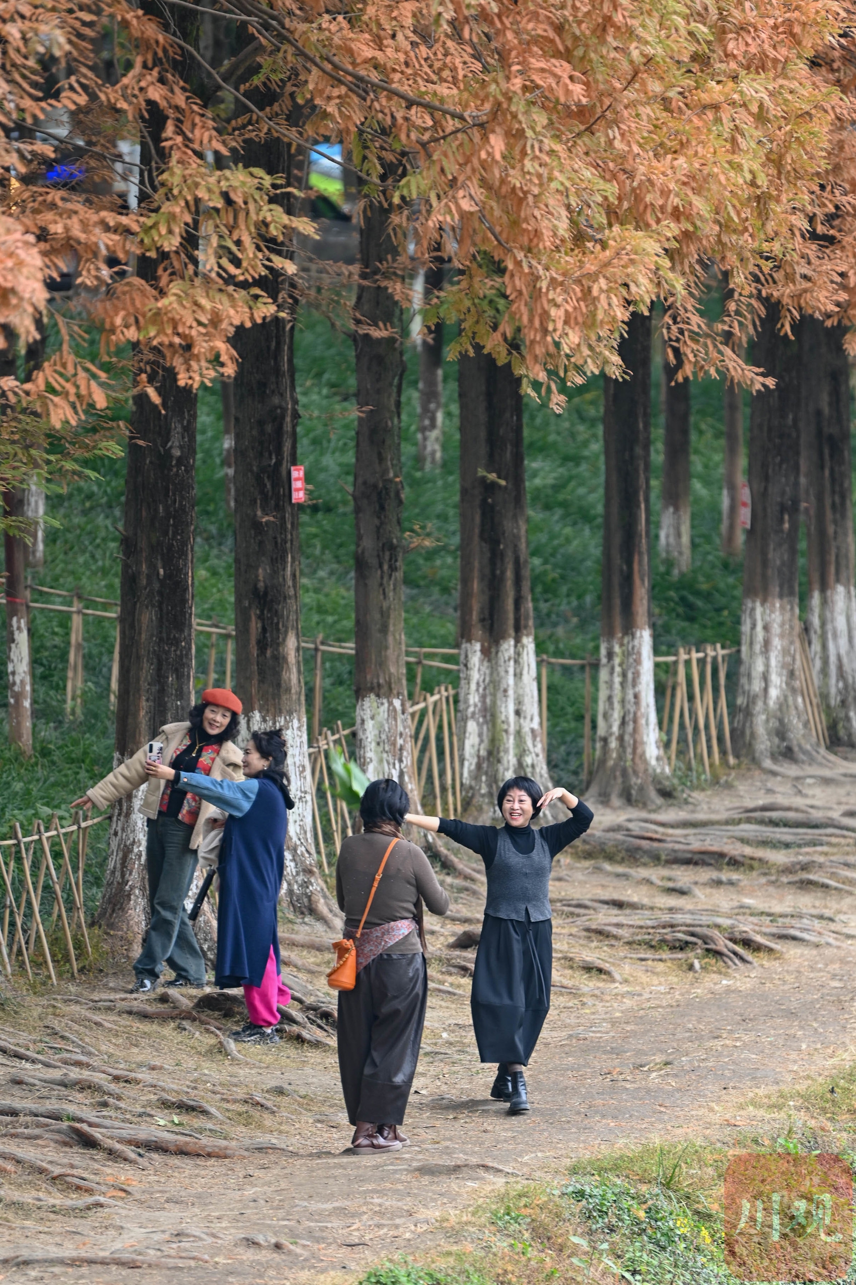12月3日,成都升仙湖畔的水杉林进入最佳观赏期。绵延2公里的百余株水杉悄然换上 “红装”,橙红、浅黄与墨绿交织渐变,倒映在澄澈河面,宛如展开一幅浓墨重彩的冬日油画,吸引大批市民游客前来打卡。