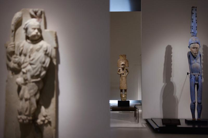 这是12月2日在法国巴黎卢浮宫博物馆的德农馆翻新后的展厅拍摄的雕塑。