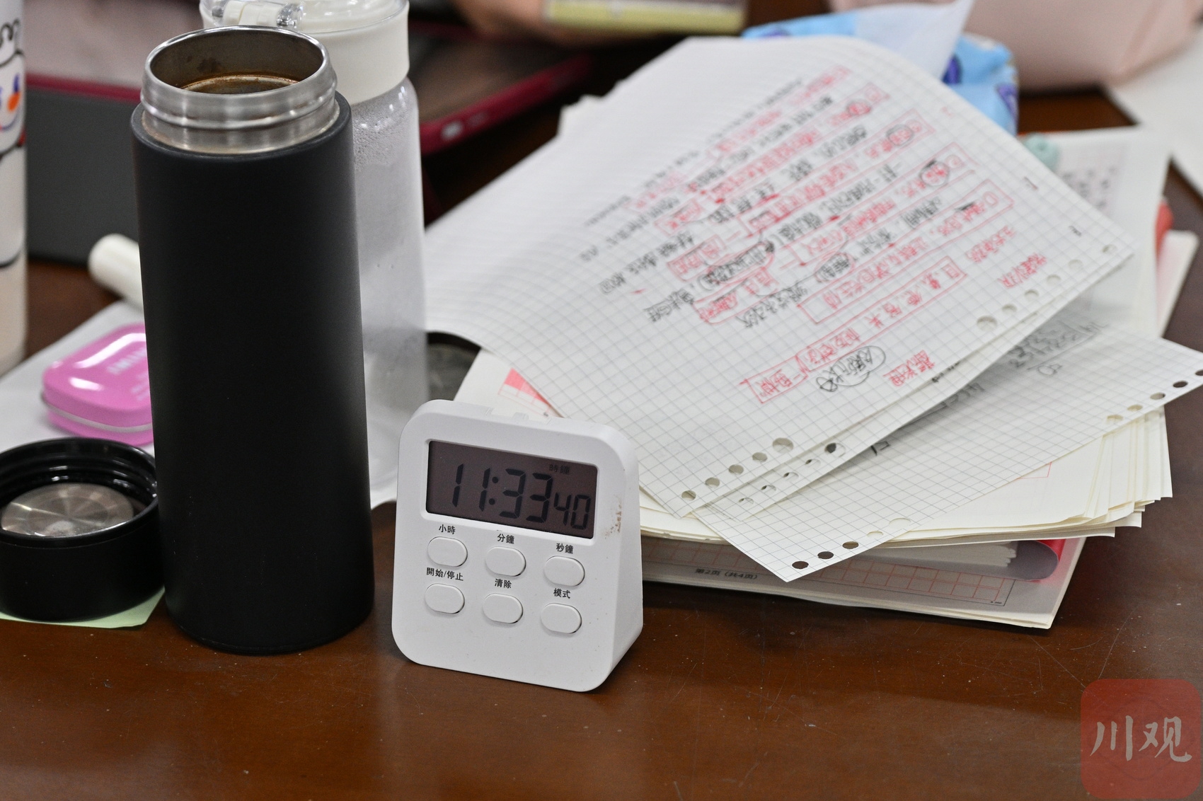 学习资料、保温杯、时刻表是学生复习时的“标配”物品。