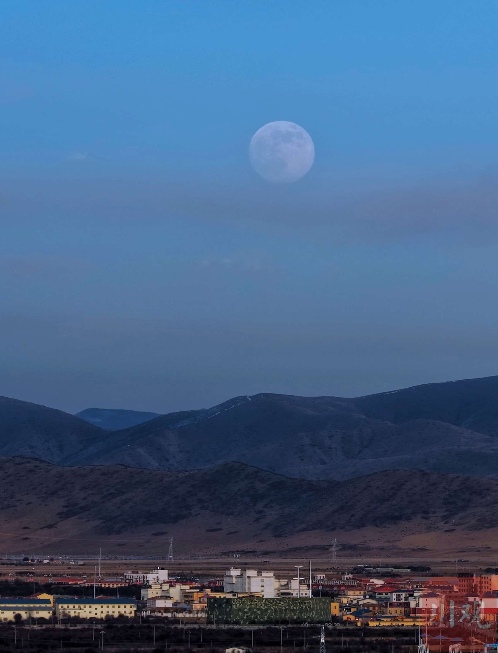 12月4日,阿坝州红原大草原哈拉玛村上空升起“超级月亮”。C视觉签约摄影师 王庆新