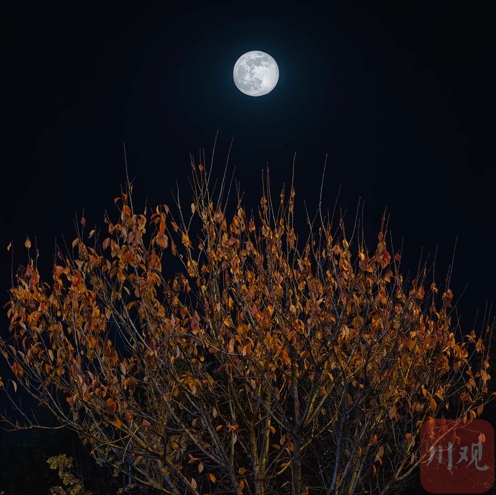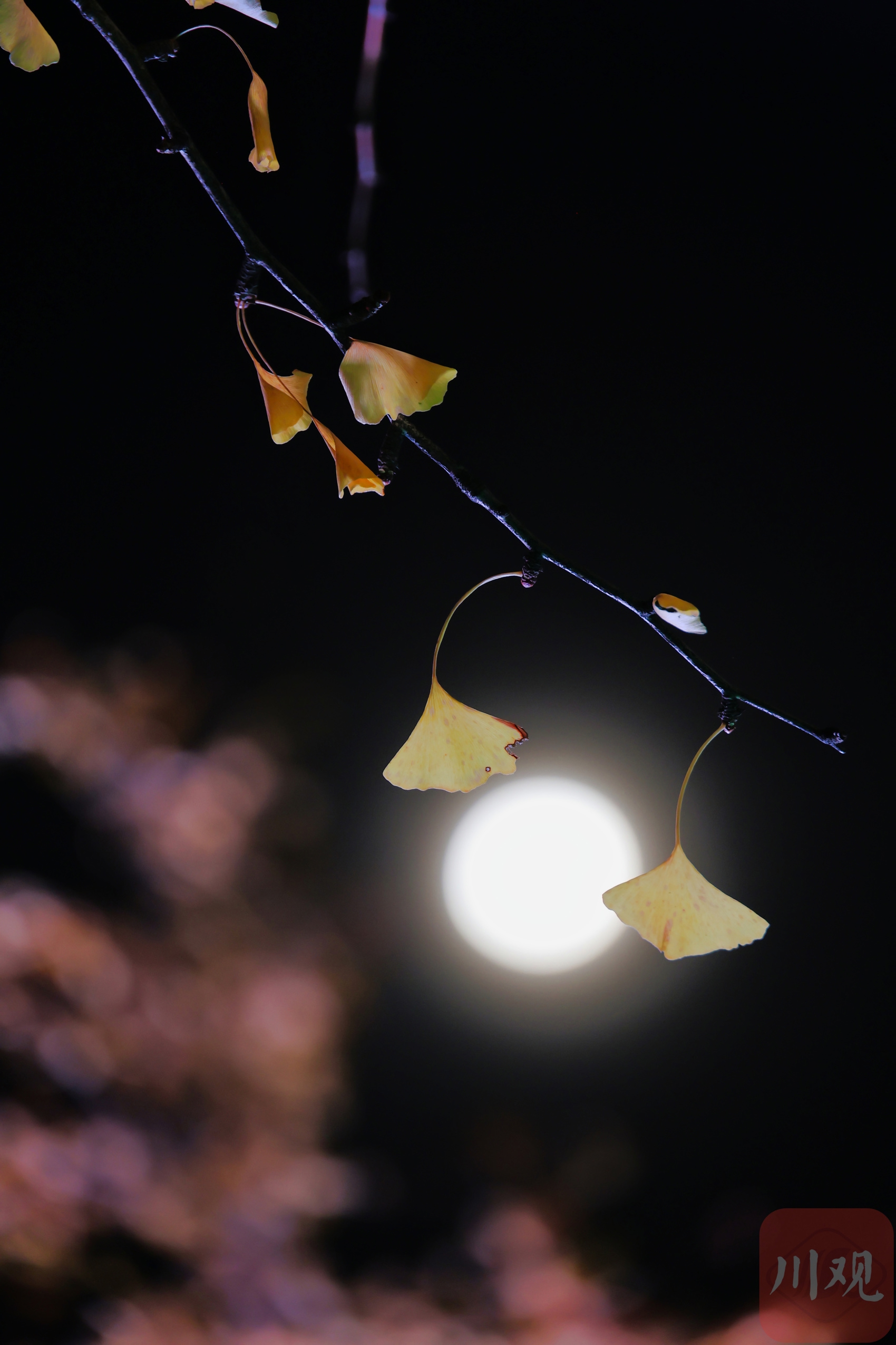 12月4日,成都双流区,“超级月亮”与银杏共绘夜色。C视觉签约摄影师 罗江涛