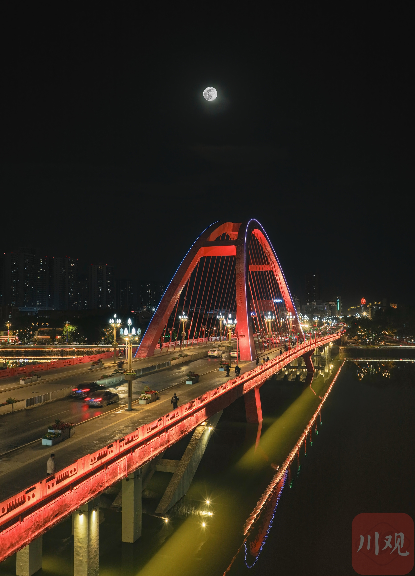12月4日,德阳彩虹桥上空升起“超级月亮”。C视觉签约摄影师 王福明