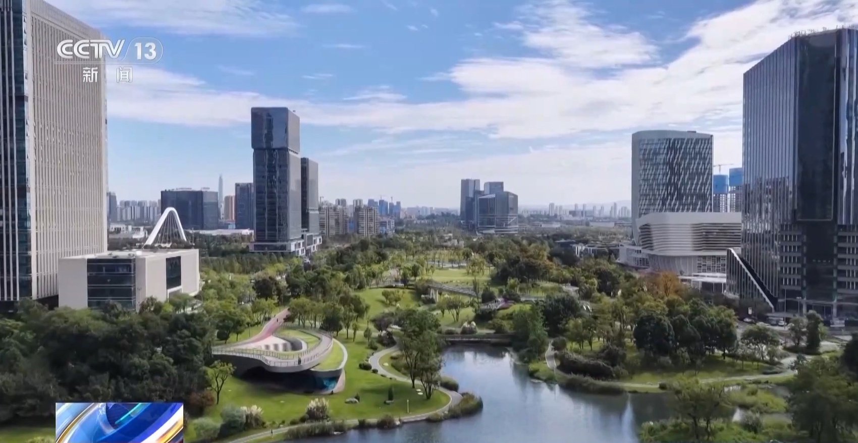 从成都市规划馆向东,记者来到了交子公园。公园占地74万平方米,东西长2.4公里,犹如一条镶嵌在城市核心的“生态绿脉”,横跨锦江和9条市政道路。