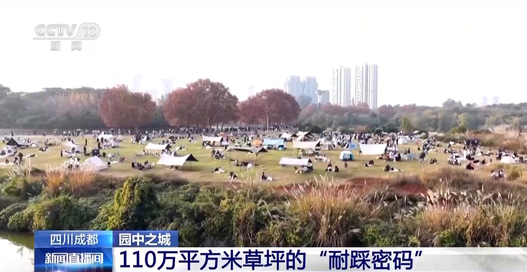 目前,成都已开放共享公园阳光帐篷区107个、面积超110万平方米,让市民席地而坐、自由嬉戏的底气,就藏在草坪下面。