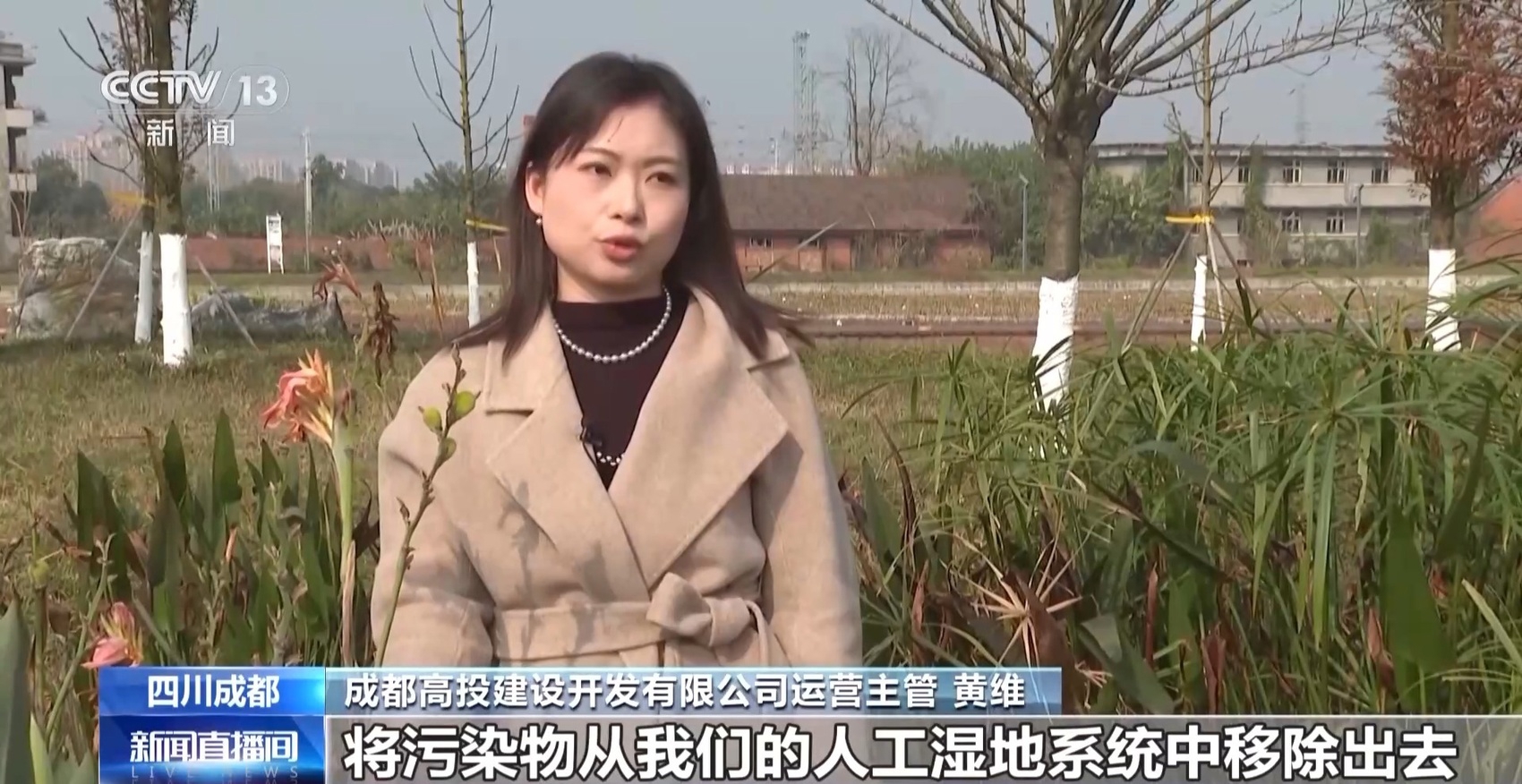 成都高投建设开发有限公司运营主管 黄维:每年冬季植物生长成熟,我们就会对它们进行一个整体的收割,将污染物从我们的人工湿地系统中移除出去。