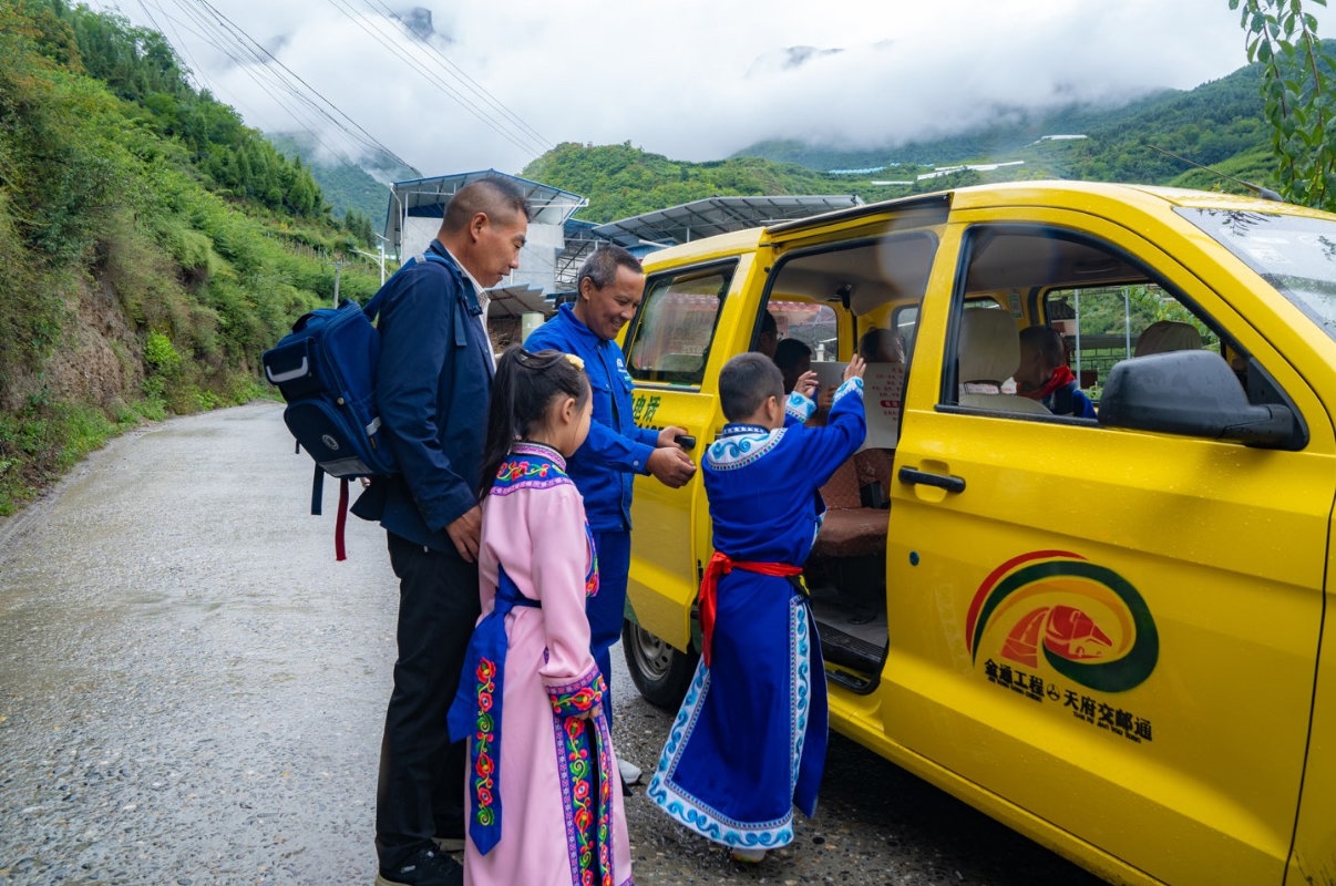 茂县南新镇,孩子们乘坐“小黄车”上下学