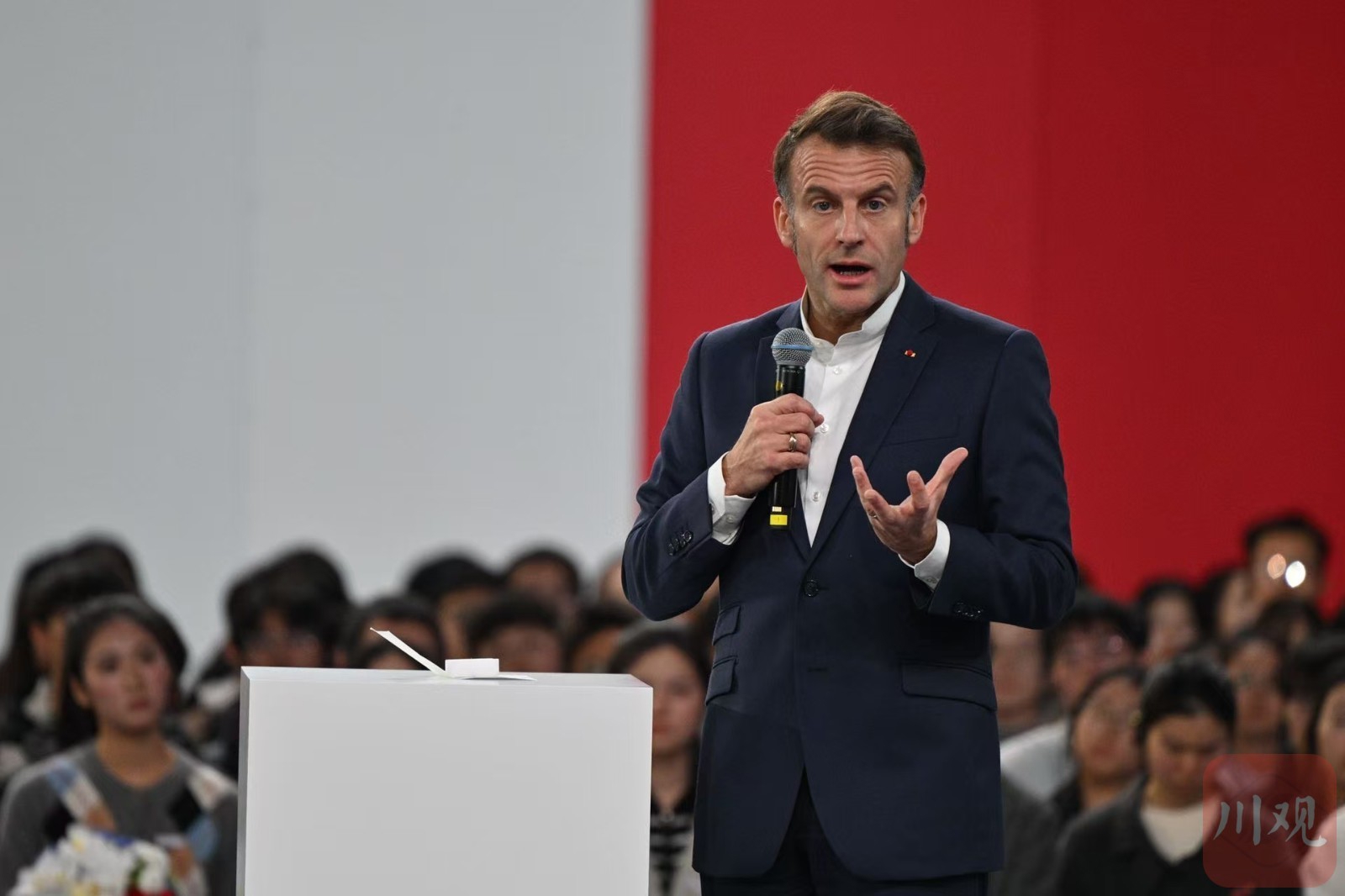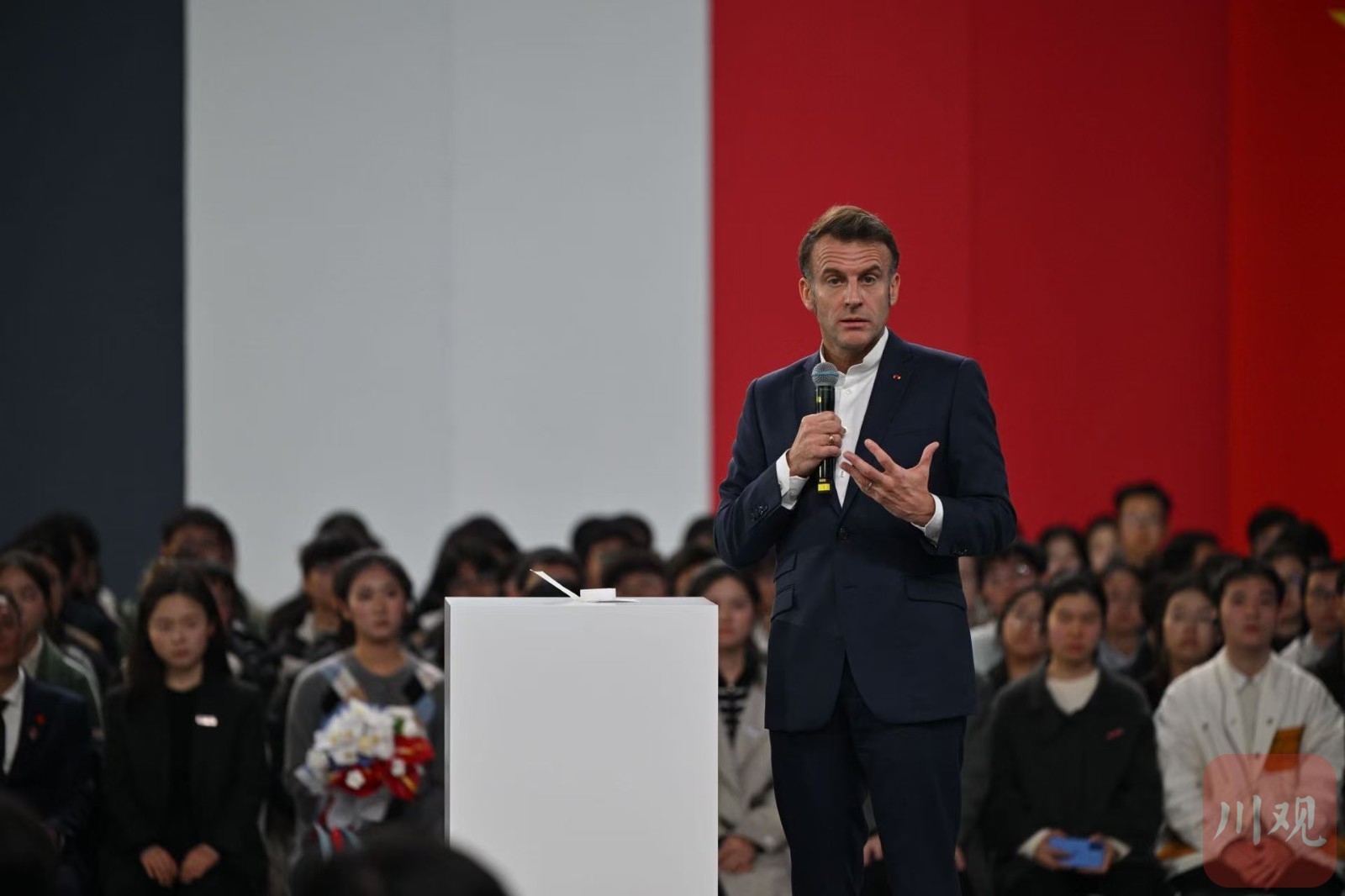 12月5日下午,法国总统马克龙在成都访问四川大学。