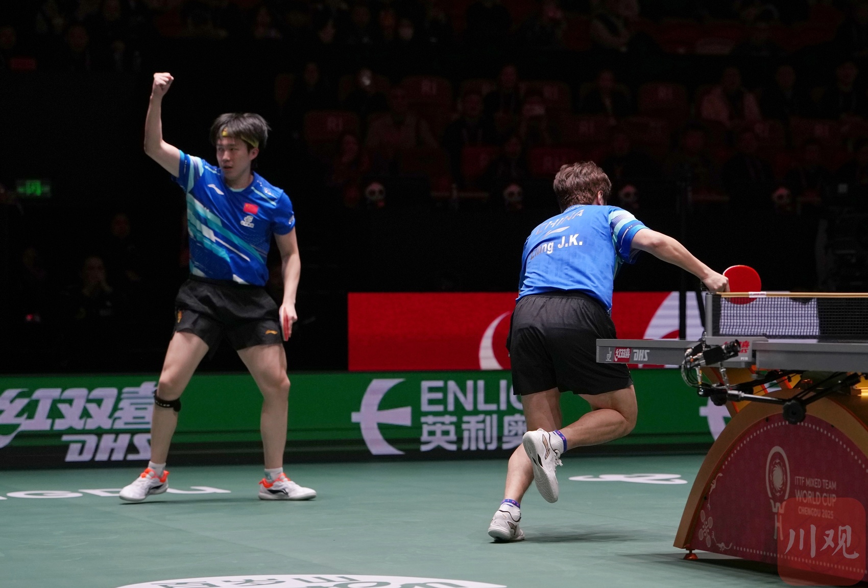 王楚钦/梁靖崑在男双比赛关键一球胜出拿下整场比赛。