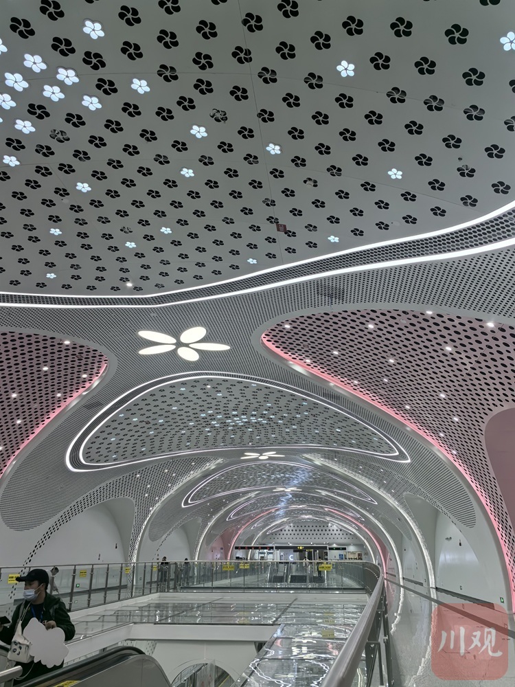 在试乘第二站幸福梅林站,记者看到,车站整体空间以梅花为主要元素,漫反射灯光烘托出“游梦梅庭”的氛围。中铁城投成都轨道指挥部工作人员周维宝介绍,幸福梅林、华西坝、杜甫草堂3座车站采用穹顶无柱结构,方便市民快捷通行。建设团队运用AI智慧、三维扫描BIM建模、3D放样等手段,实现高起点策划、高标准建设、高效率推进、高质量交付。