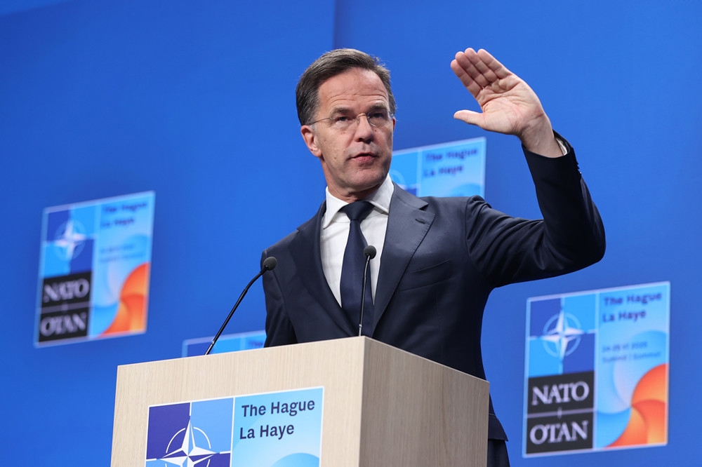 6月25日,在荷兰海牙,北约秘书长吕特在北约峰会期间出席新闻发布会。图据新华社