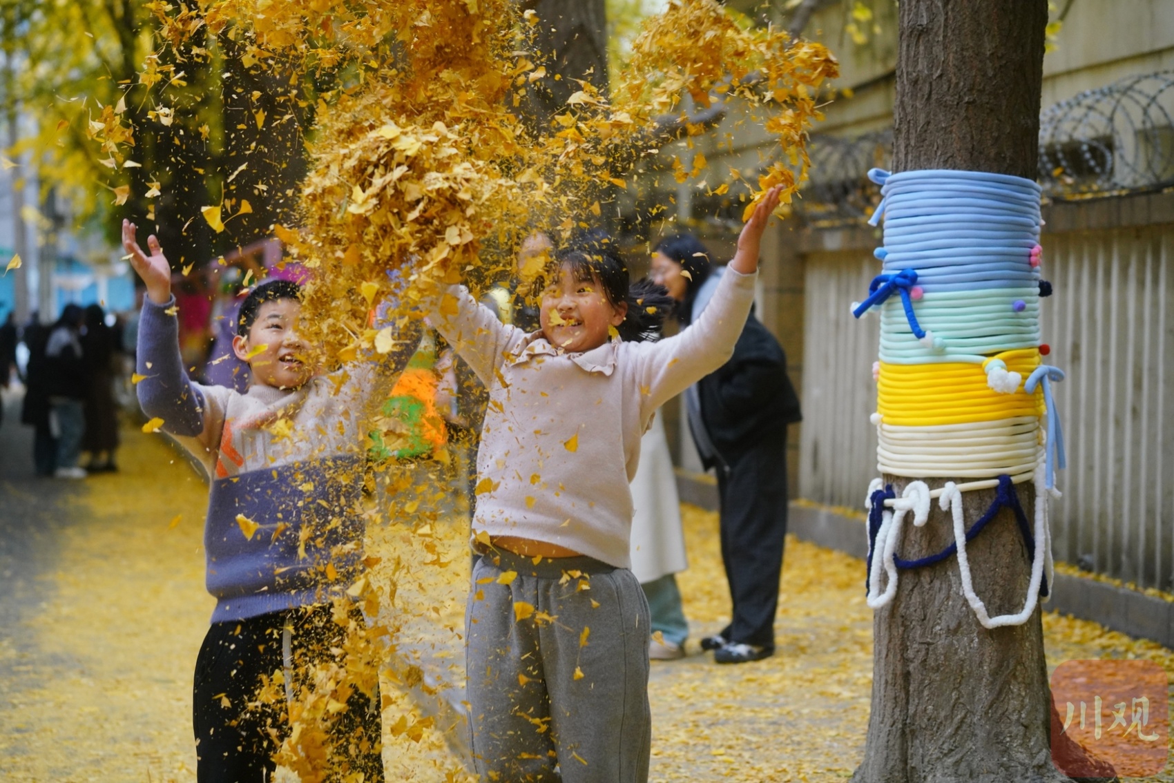 冬日,成都高新区兴蓉北街的银杏树披上了手工编织的“彩衣”。这些毛衣图案多样,有心形、花纹、小动物,有的还缀着可摆弄的玩偶手。它们出自社区上百名居民、学生之手,一针一线间编织进浓浓的邻里温情。