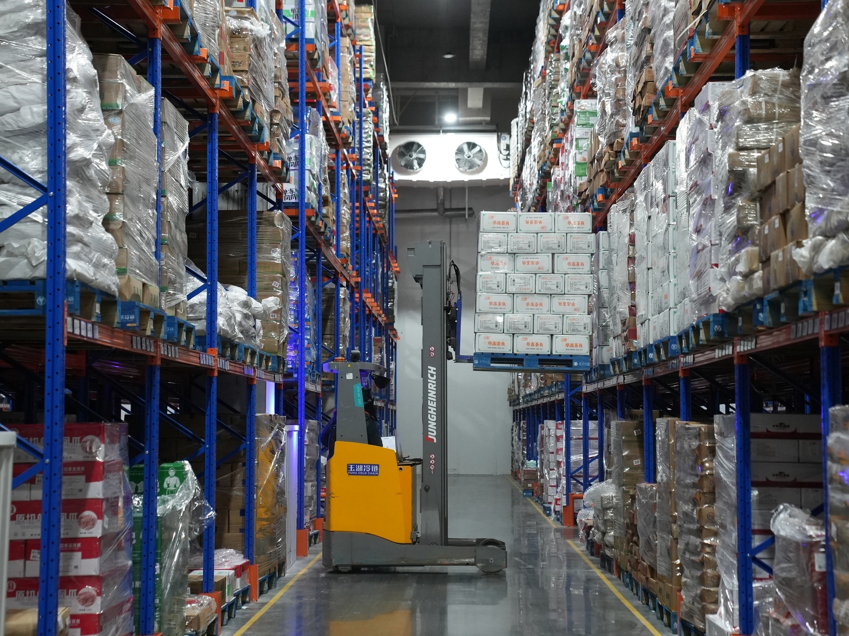 零下18℃的仓库里,工人正在堆放来自全球的优质商品。