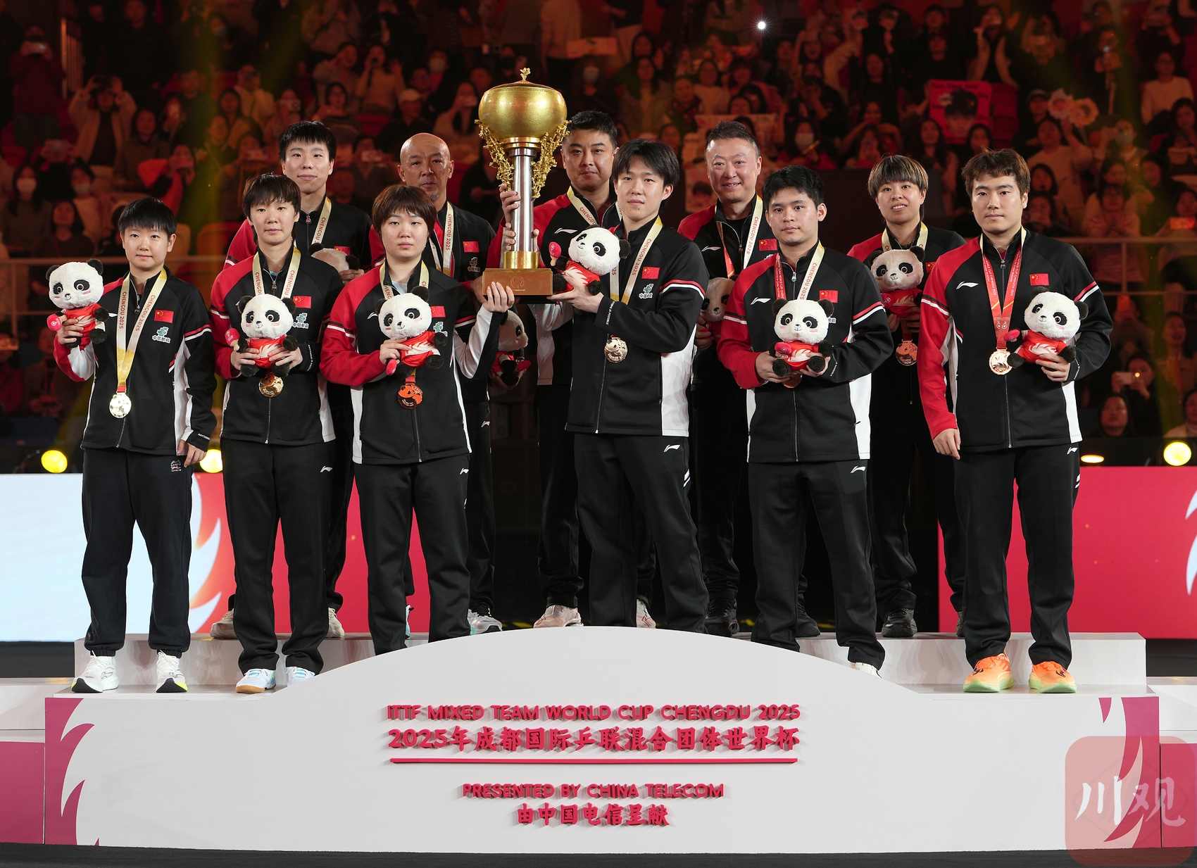 12月7日晚,2025年成都国际乒联混合团体世界杯决赛在四川省体育馆精彩收官。东道主中国队迎战日本队,在全场观众“中国队,加油!”的热烈助威声中,凭借全员稳定发挥成功卫冕,一举实现赛事三连冠。